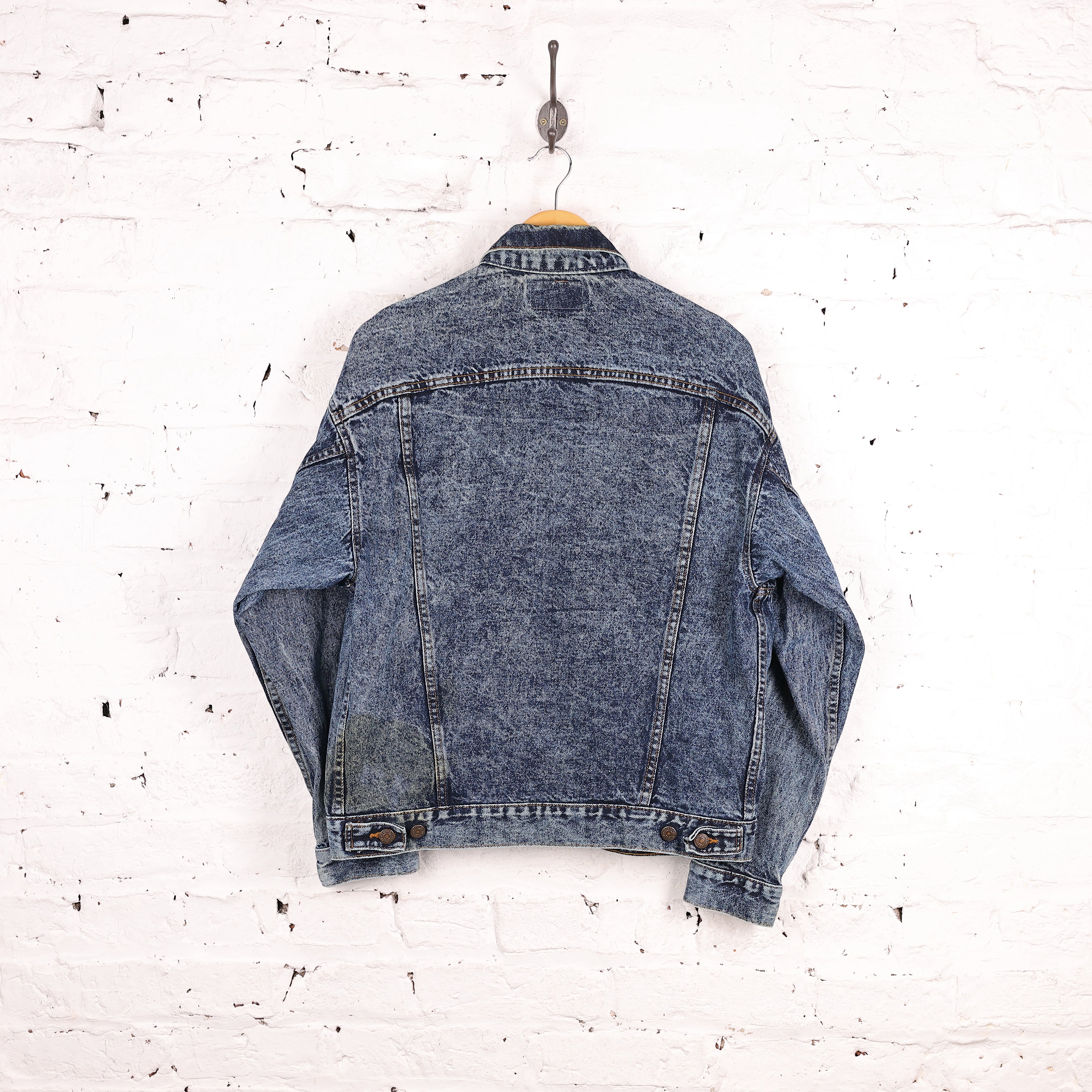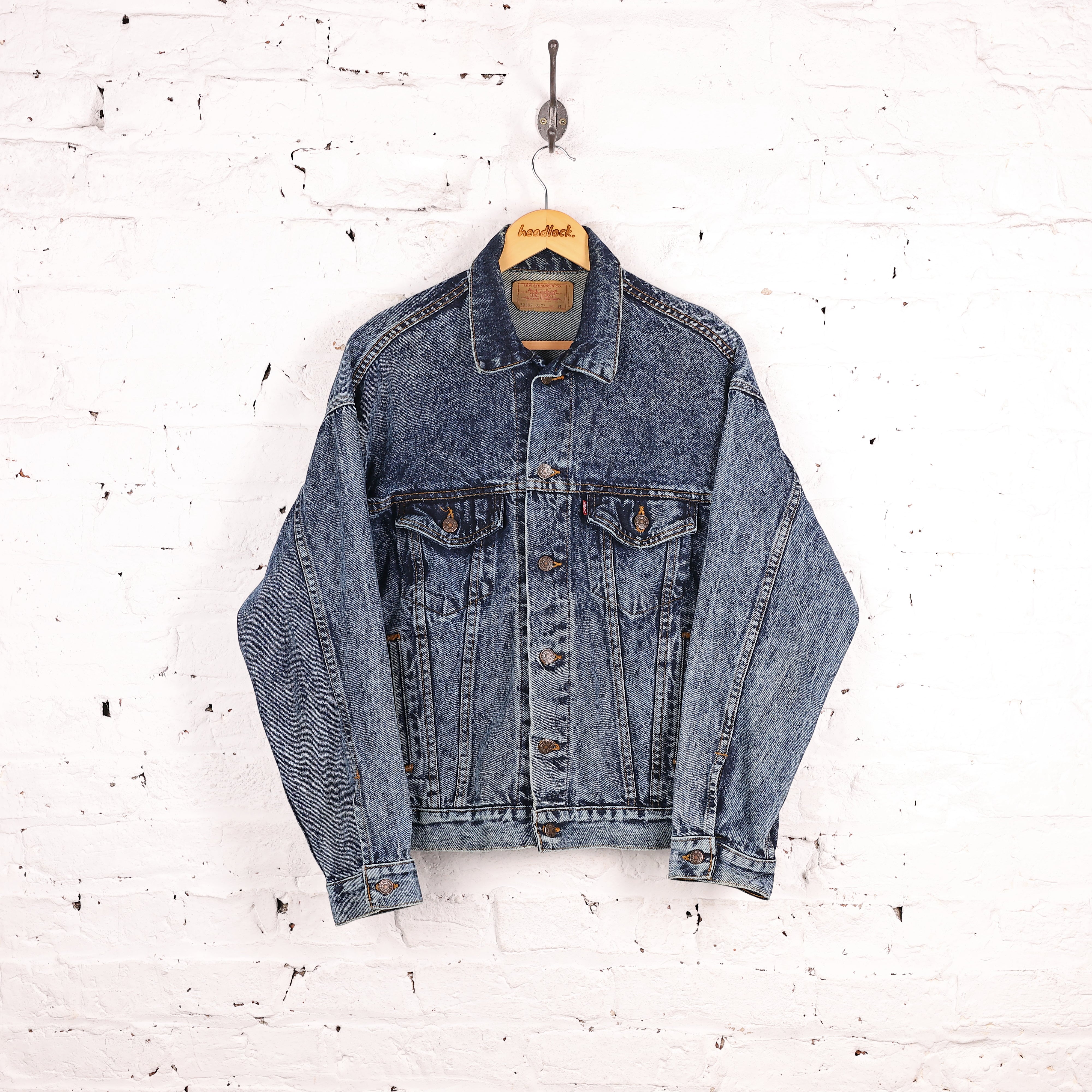 Good condition. Levi's denim jacket in dark blue acid wash with four pockets and bronze buttoning.