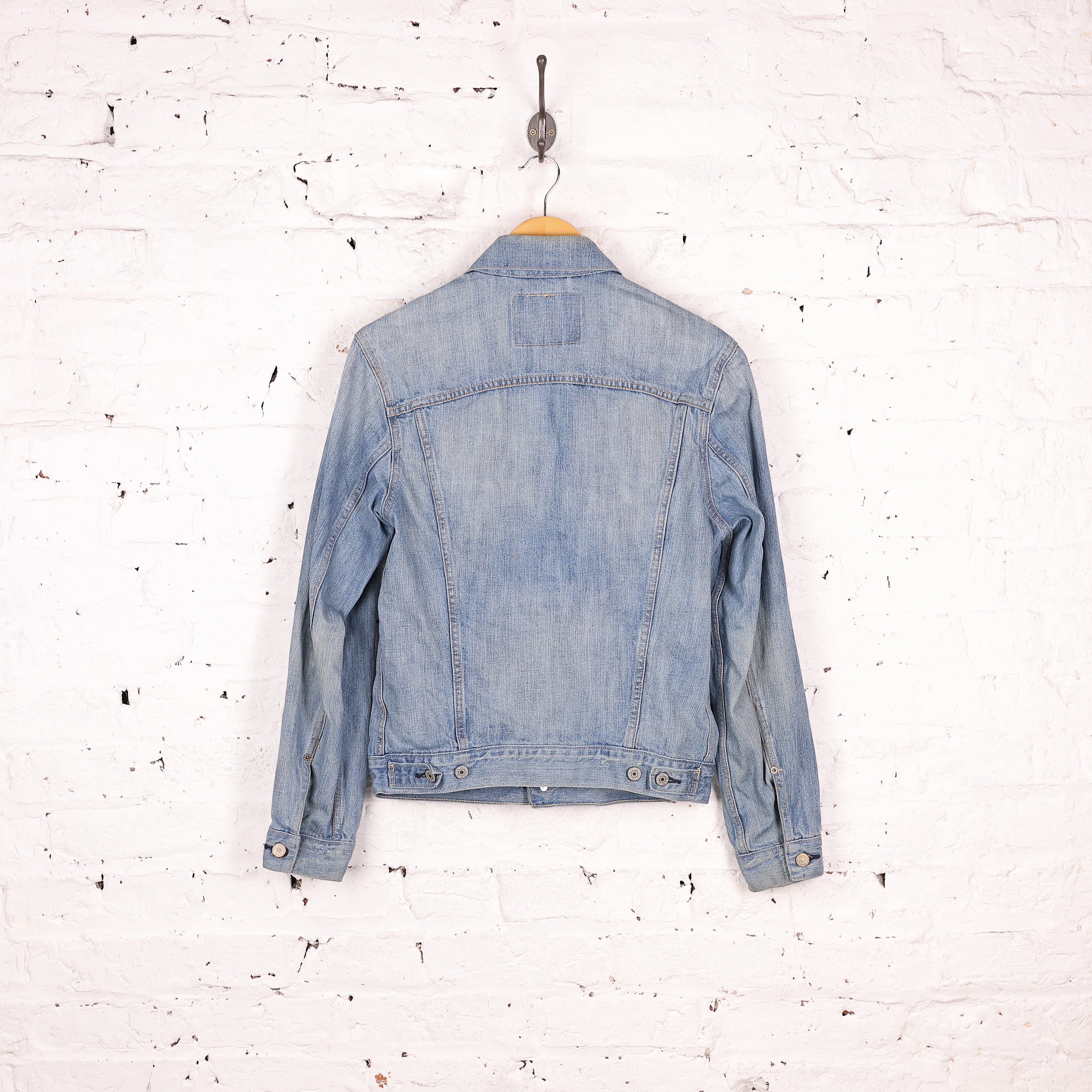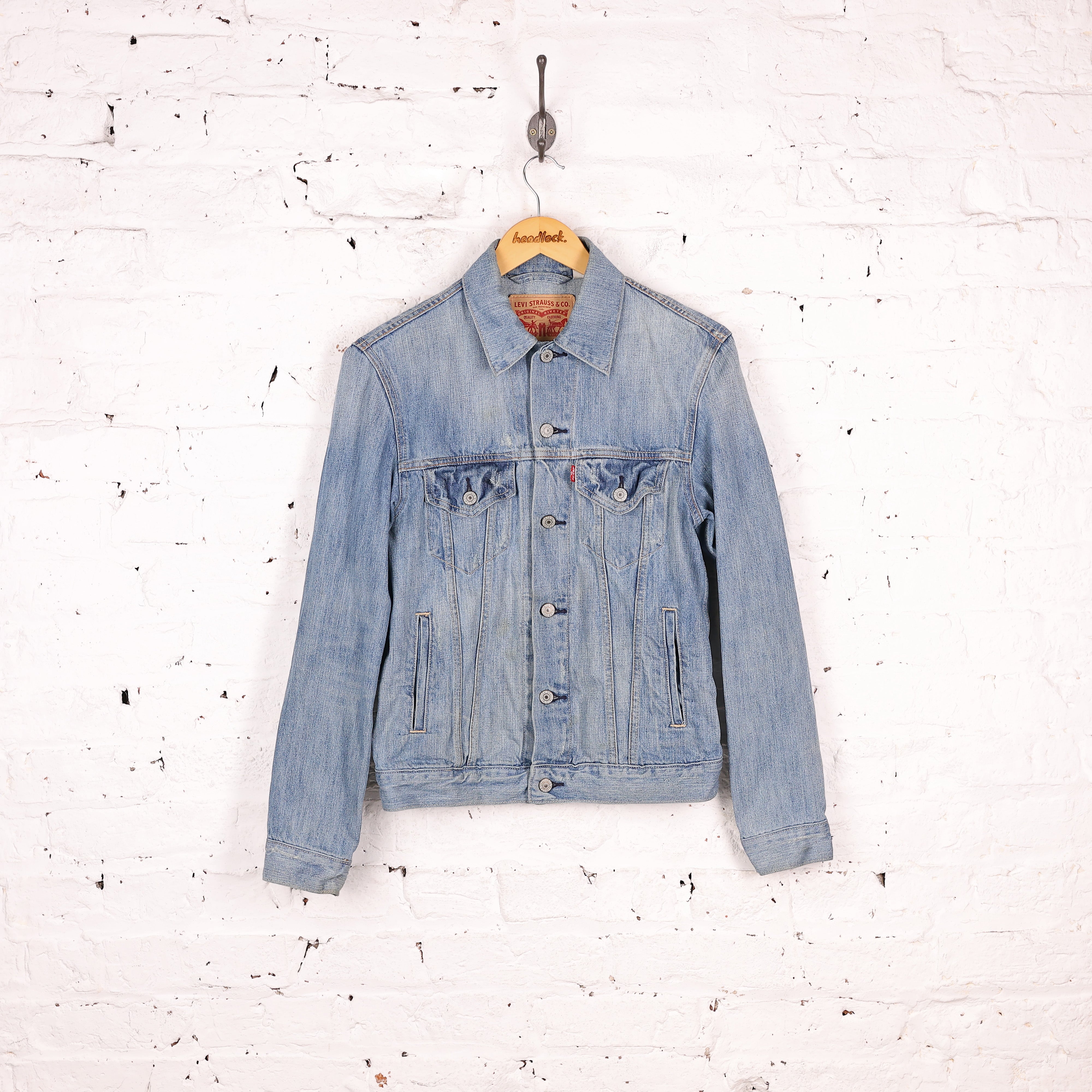 Good conditon. Levi's denim jacket in light blue, fitted with four pockets, silver buttoning and red tab.