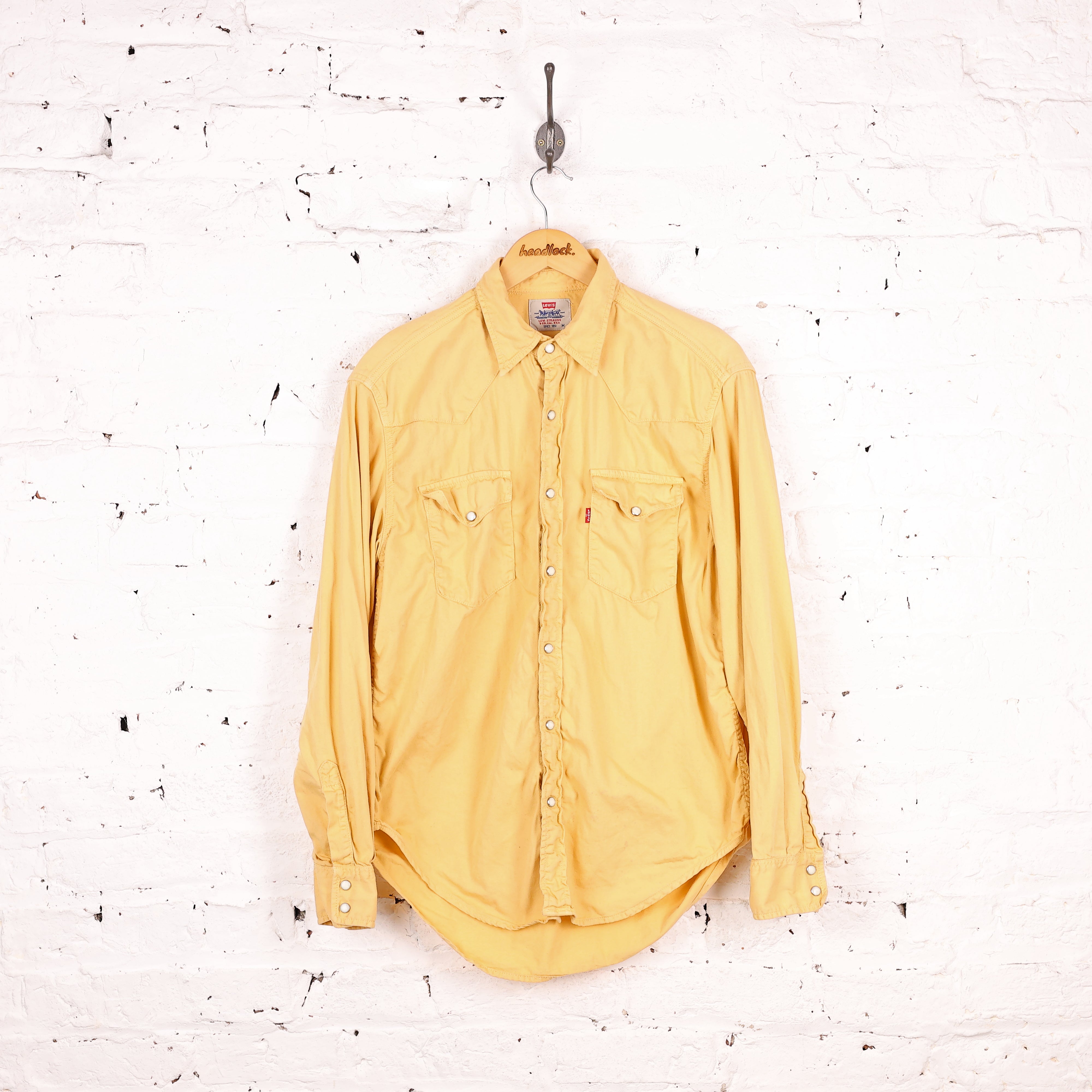 Good condition, slight wear. Levi's denim shirt in yellow with two chest pockets, popper buttoning and red tab.