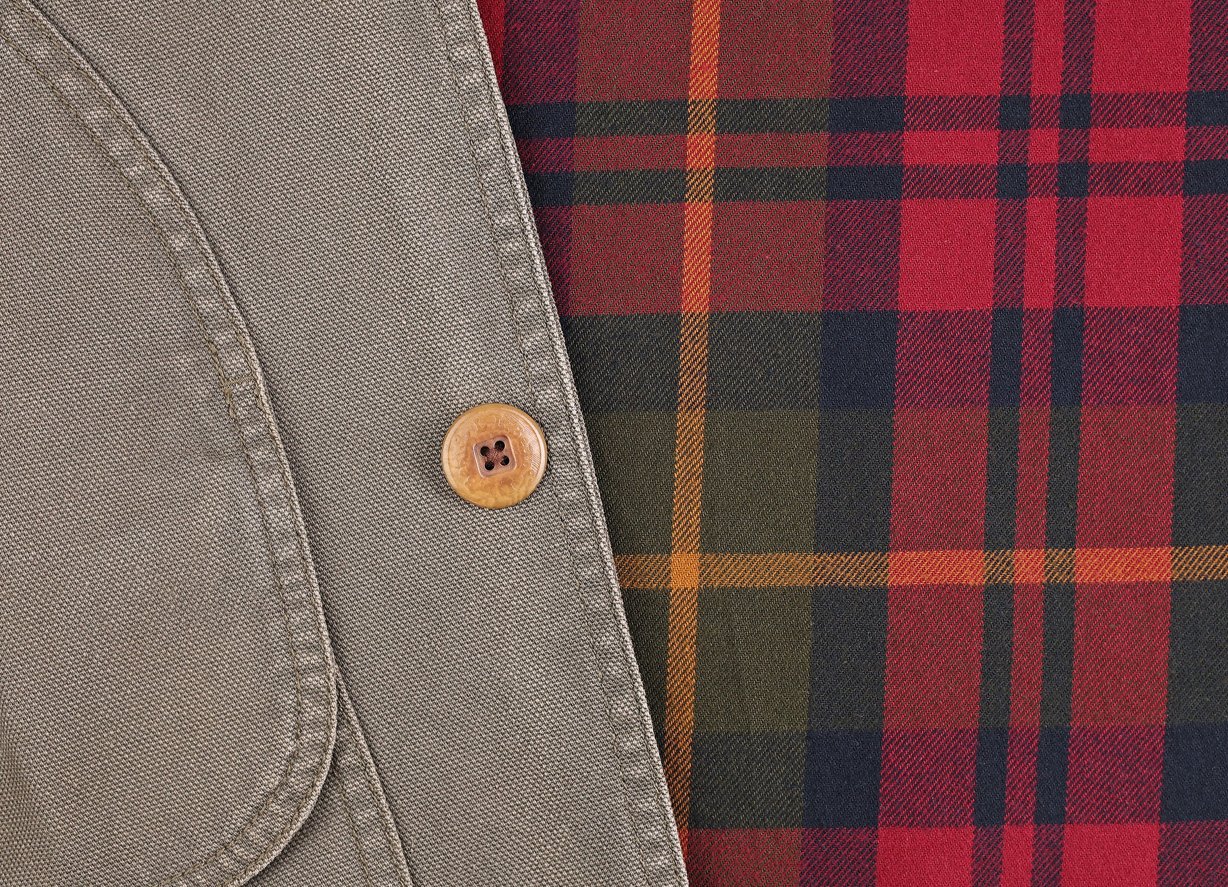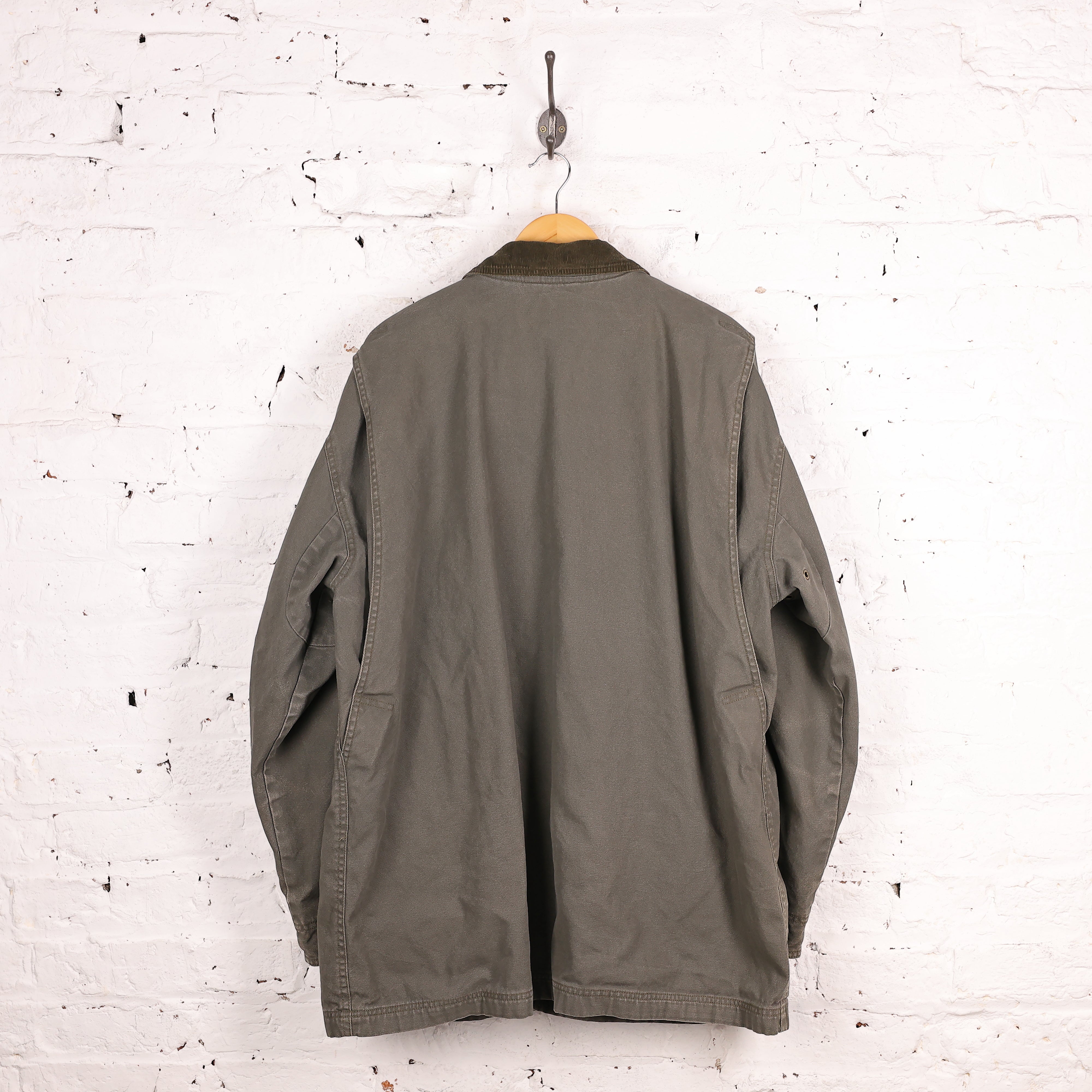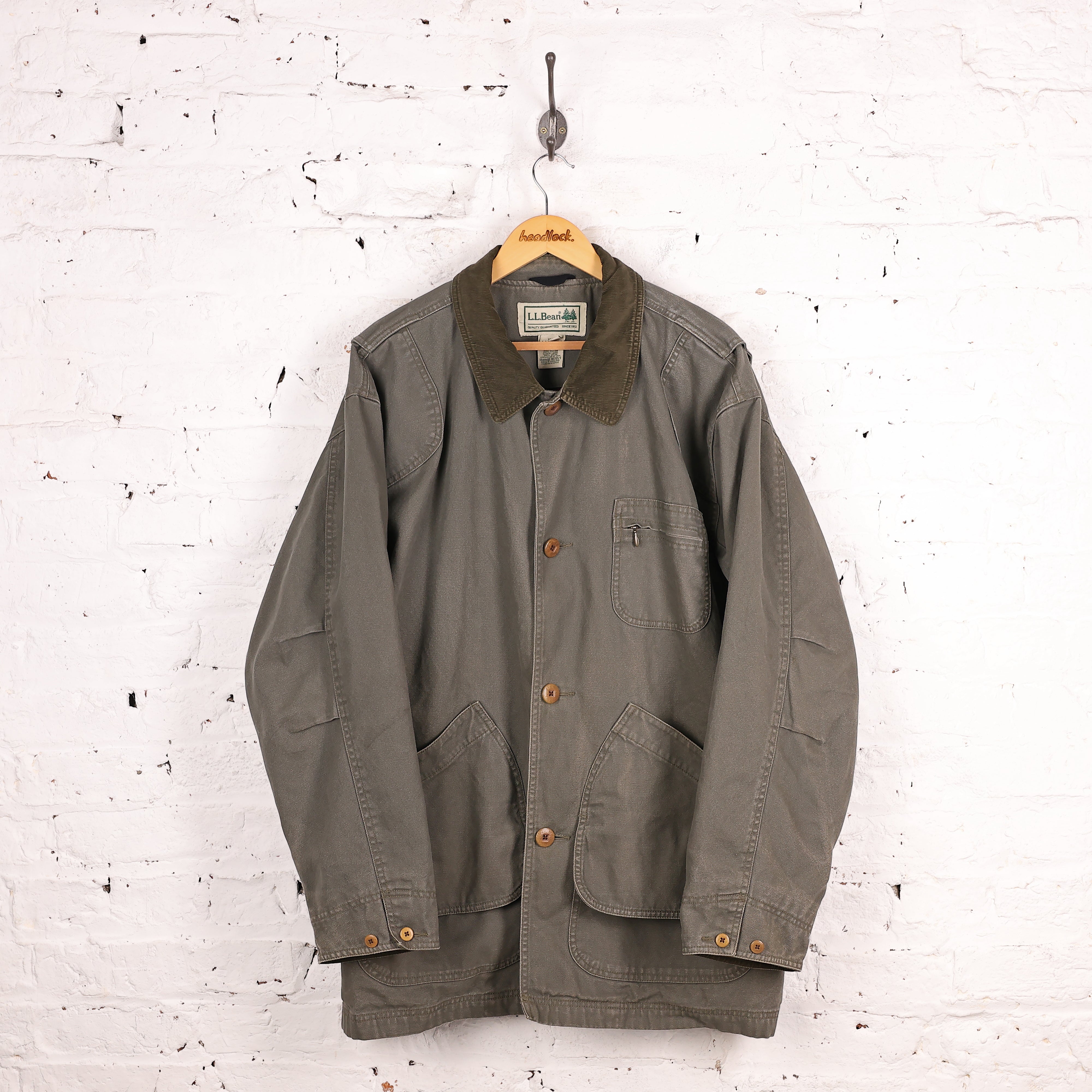 Excellent condition. LL Bean barn jacket in green with cord collar, double outer pockets and check inner lining. (Large fitting)