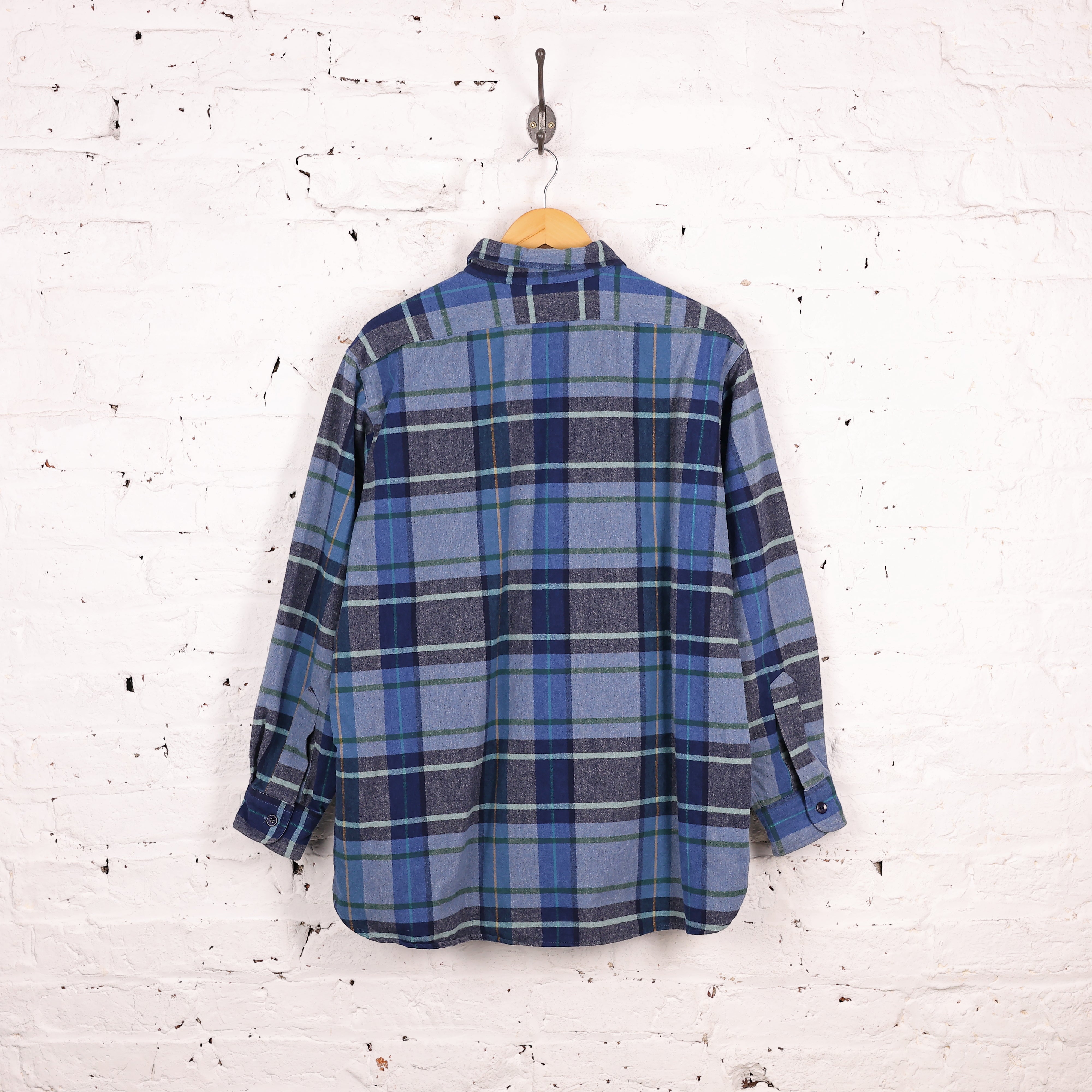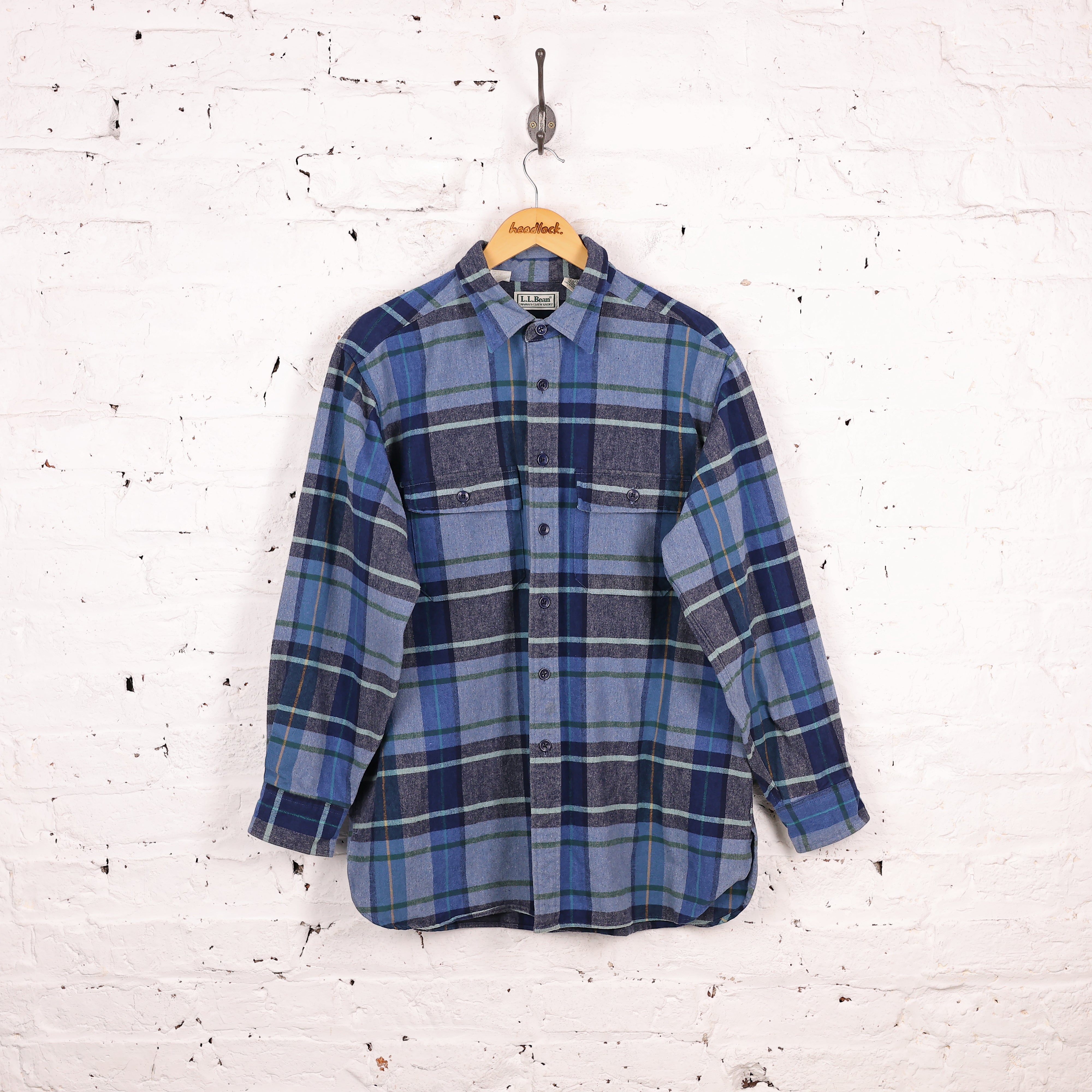 LL Bean Plaid Check Chamois Cloth Shirt - Blue - L