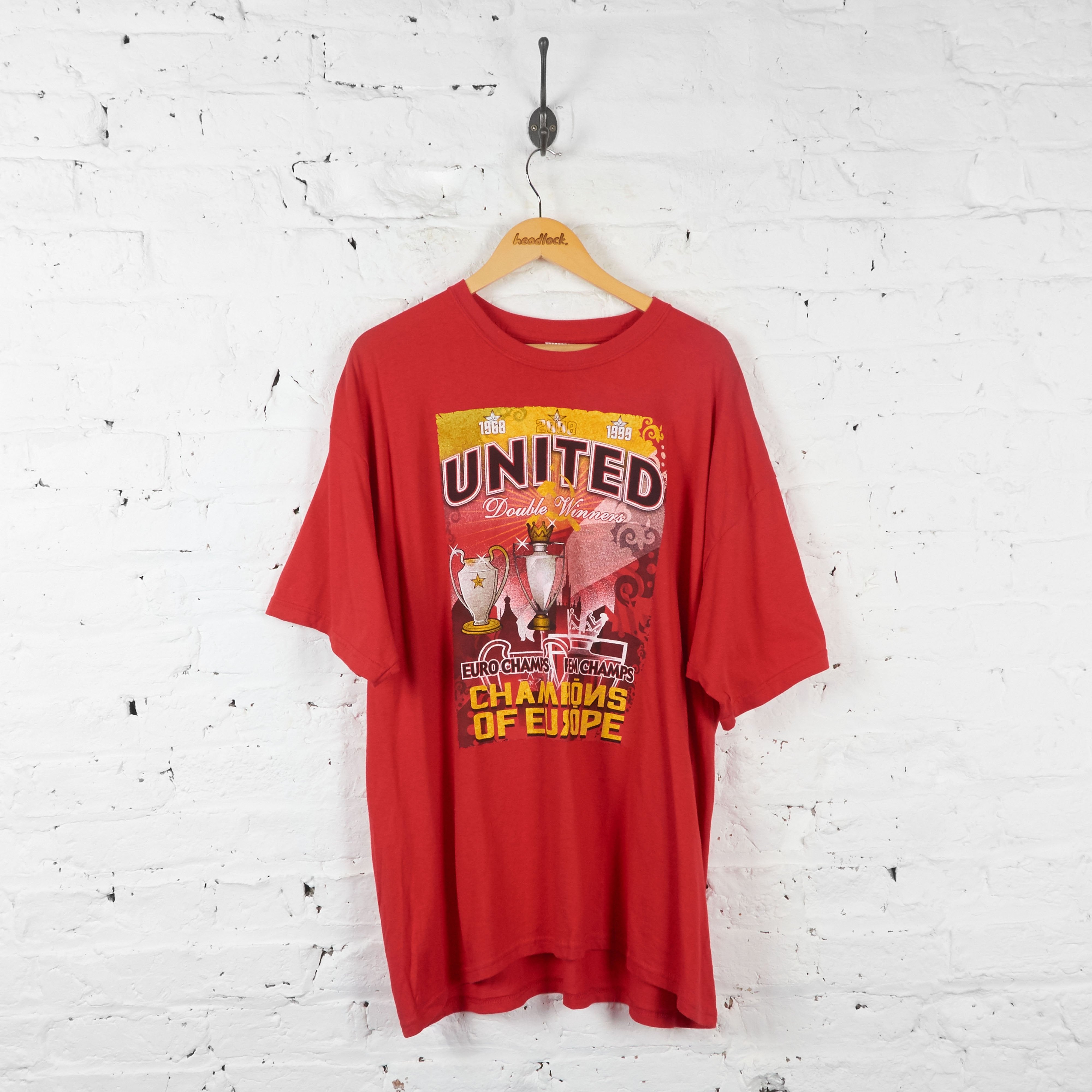 Manchester United 2008 Double Winners T Shirt - Red - XXL