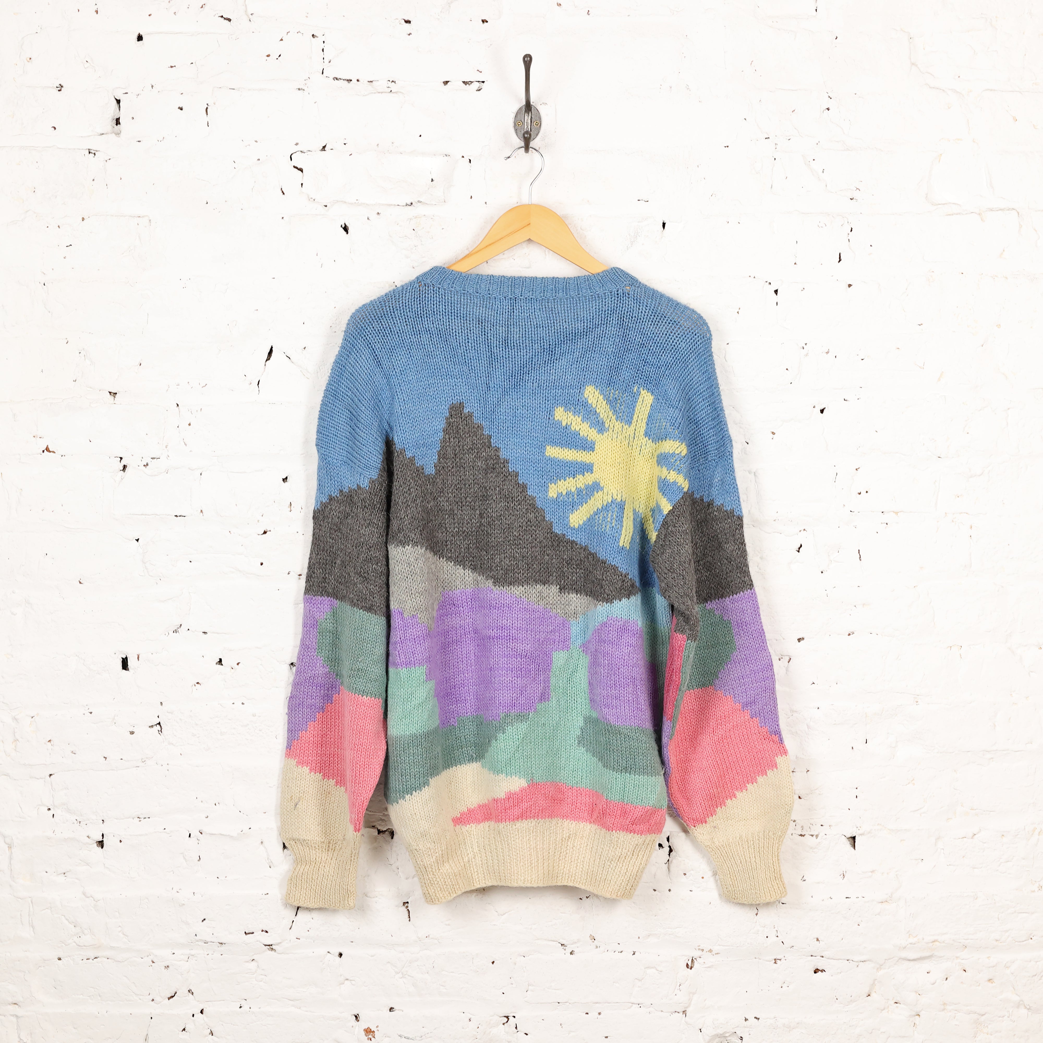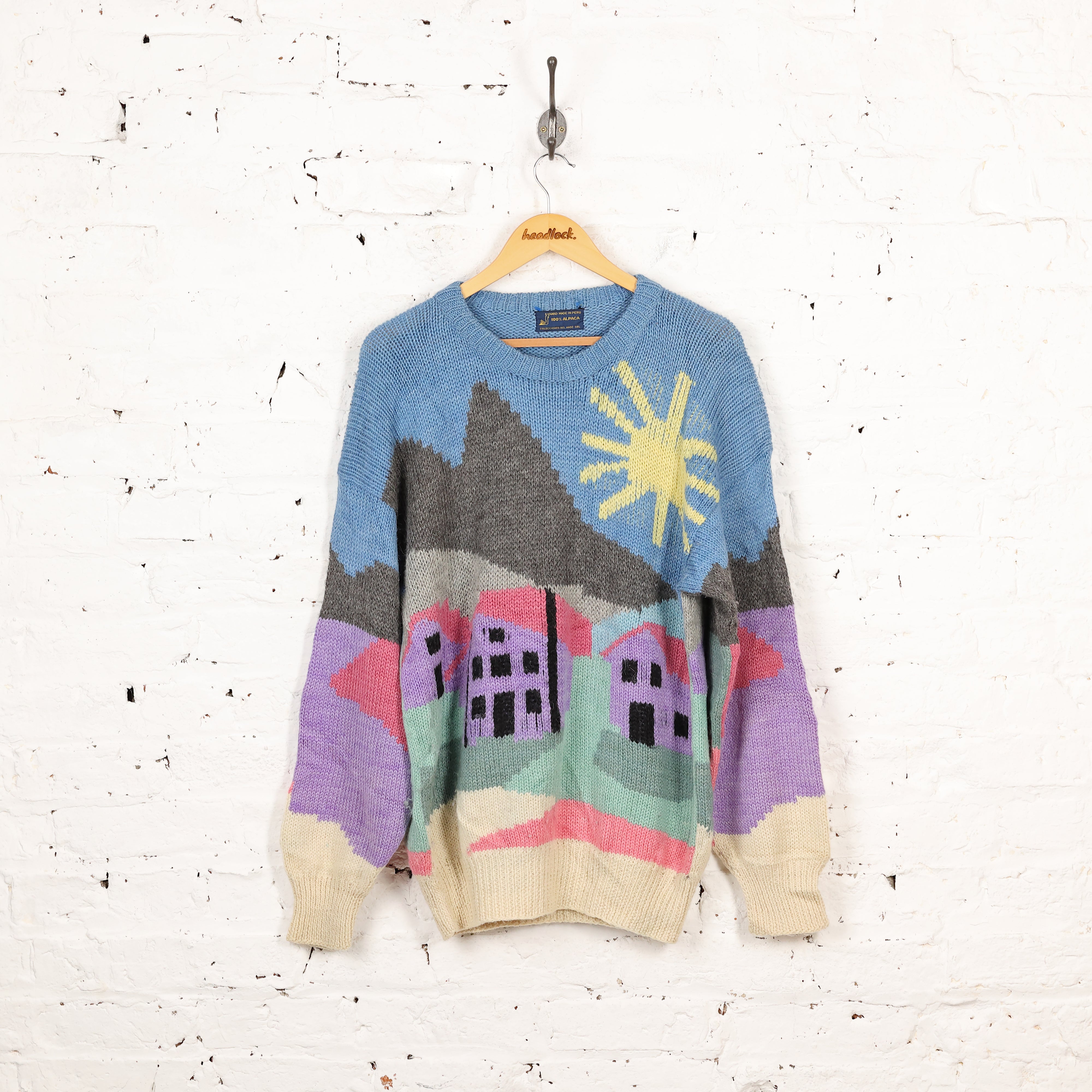 Novelty Picture Knit Alpaca Wool Knit Jumper - Blue - L