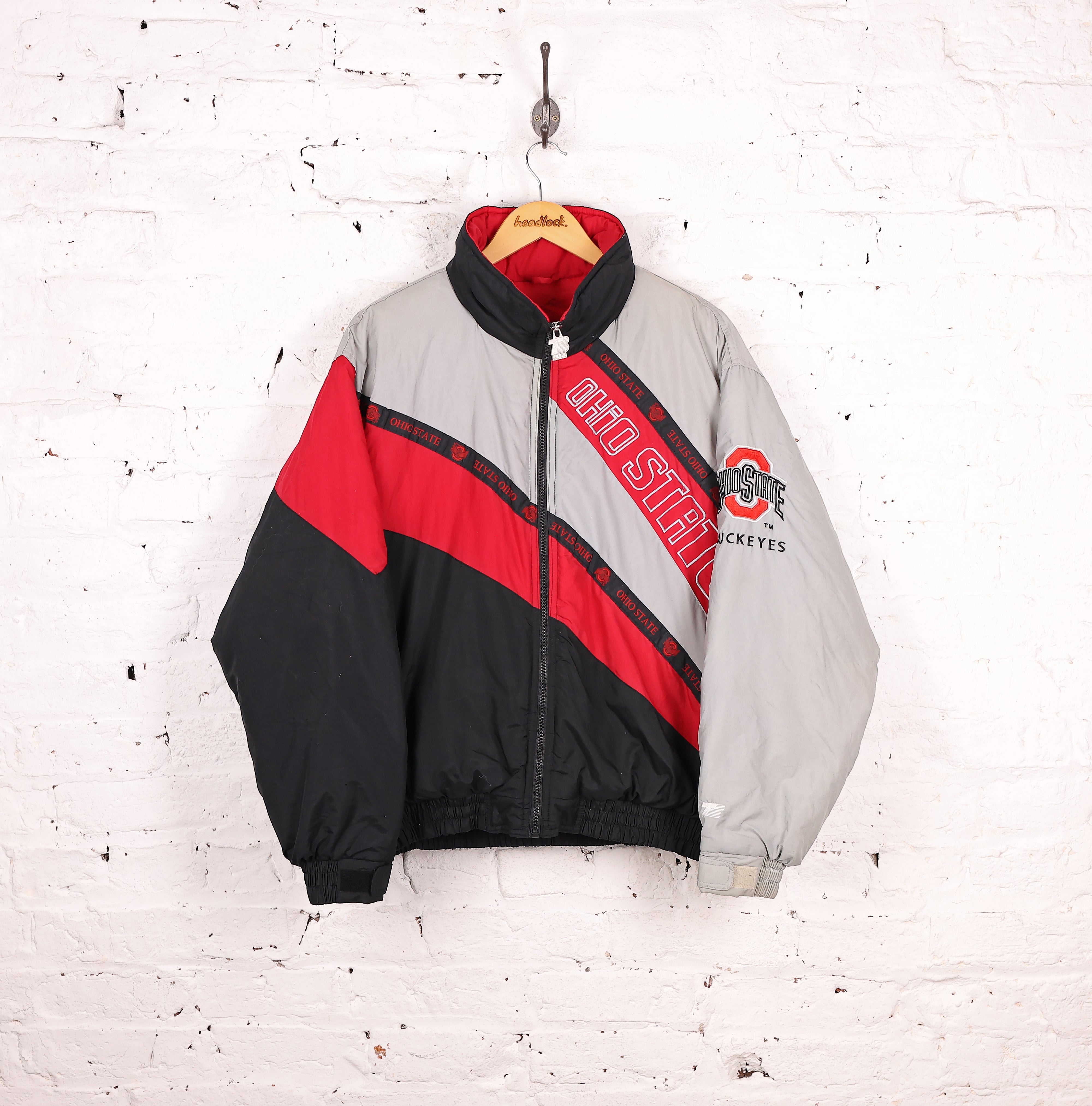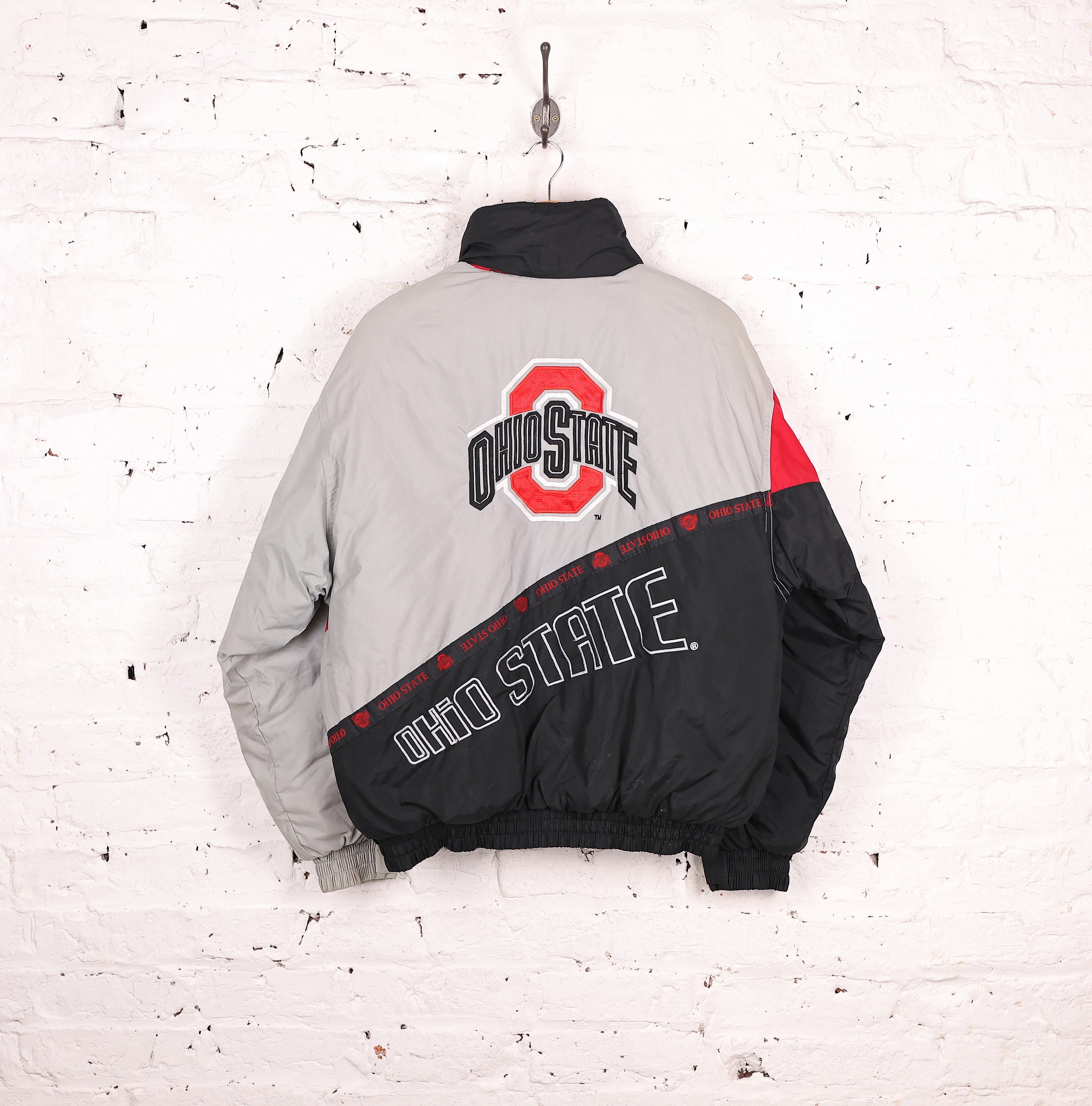 Good condition. Ohio State jacket in grey, black and red colours, stitched lettering, zip fasten and two pockets.