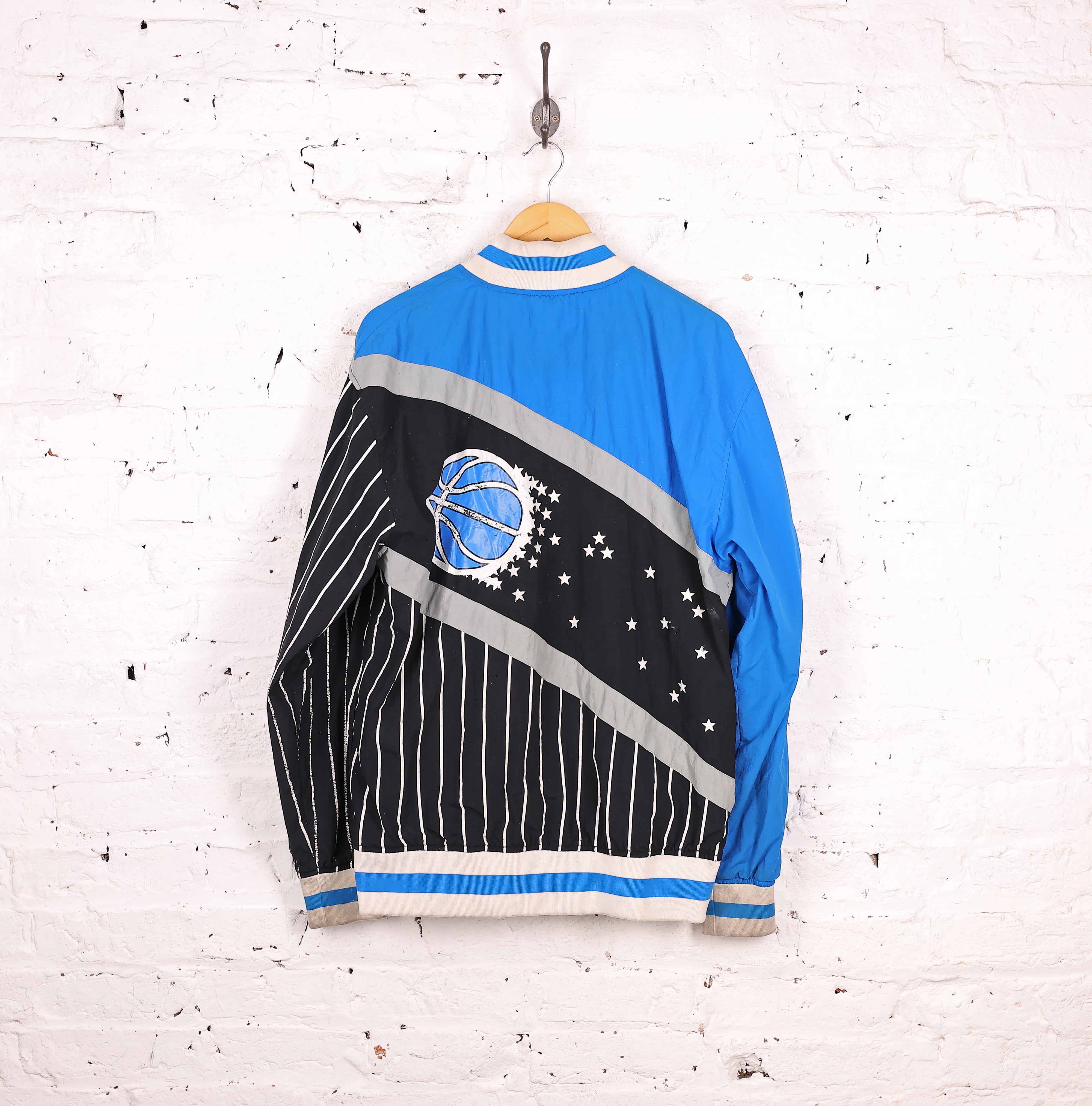 Good condition but Magic lettering is peeling slightly. Orlando Magic bomber jacket in black, blue and white colours.