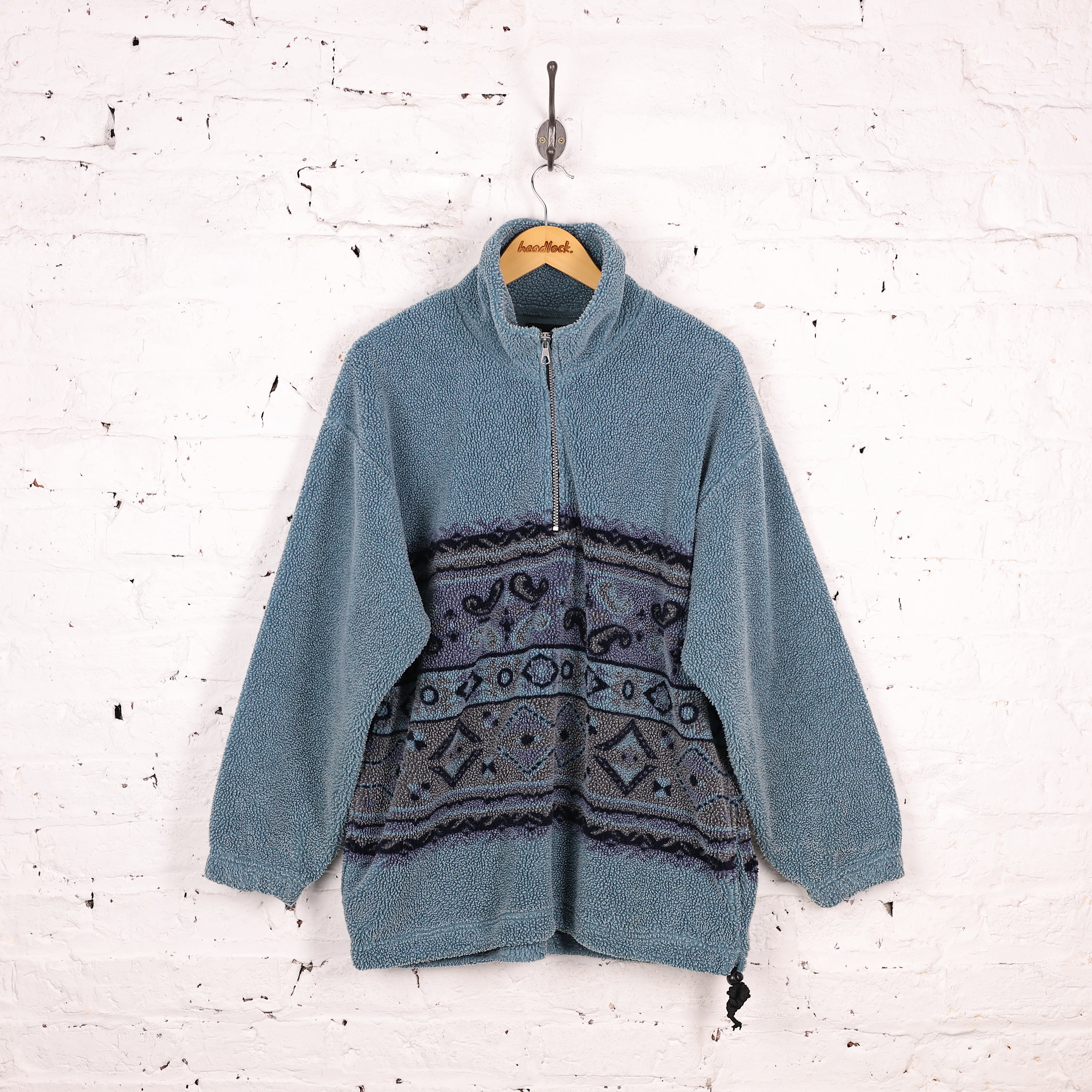 Patterned 1/4 Zip Pile Fleece - Blue - XXL