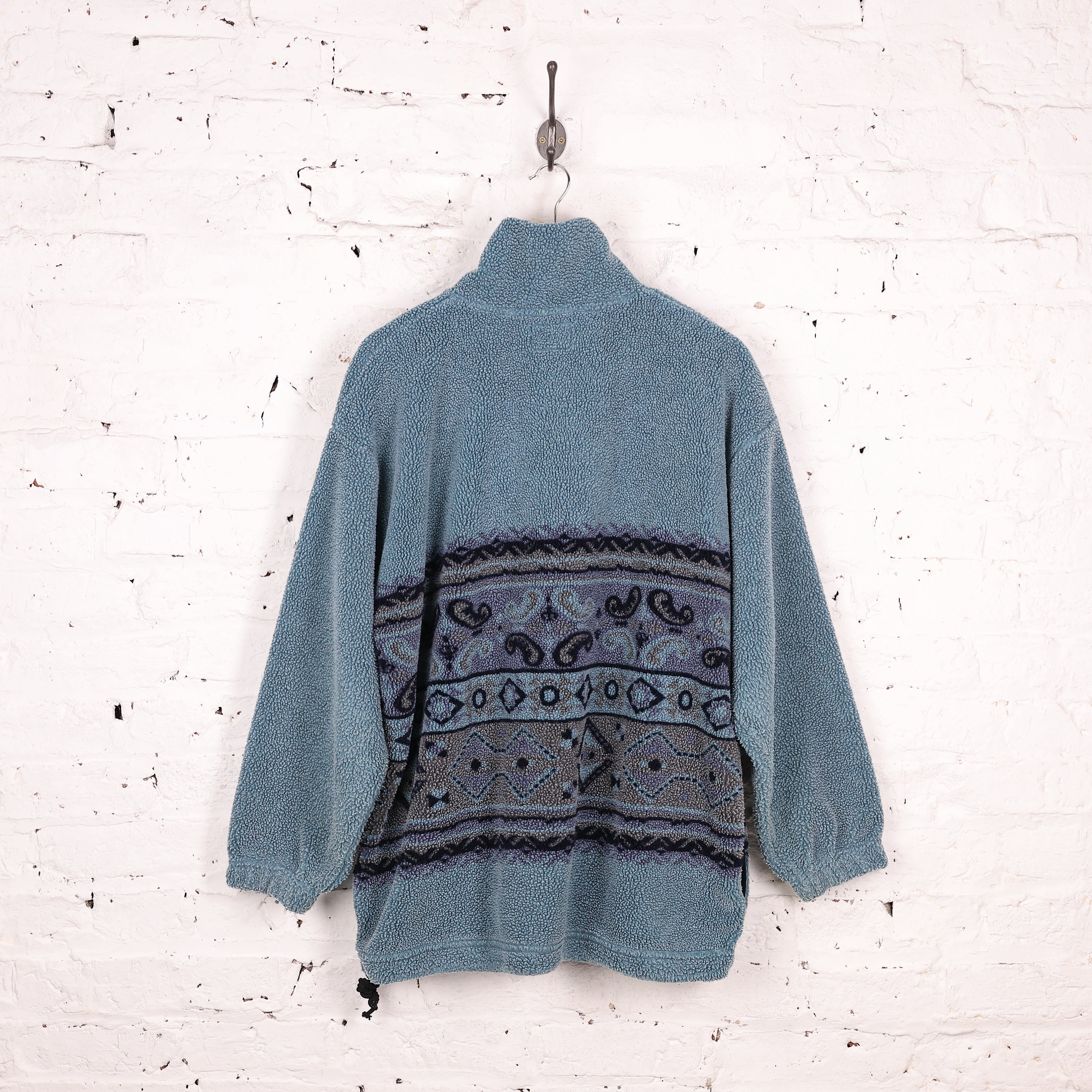 Good condition. 1/4 zip patterned fleece in blue with two pockets
