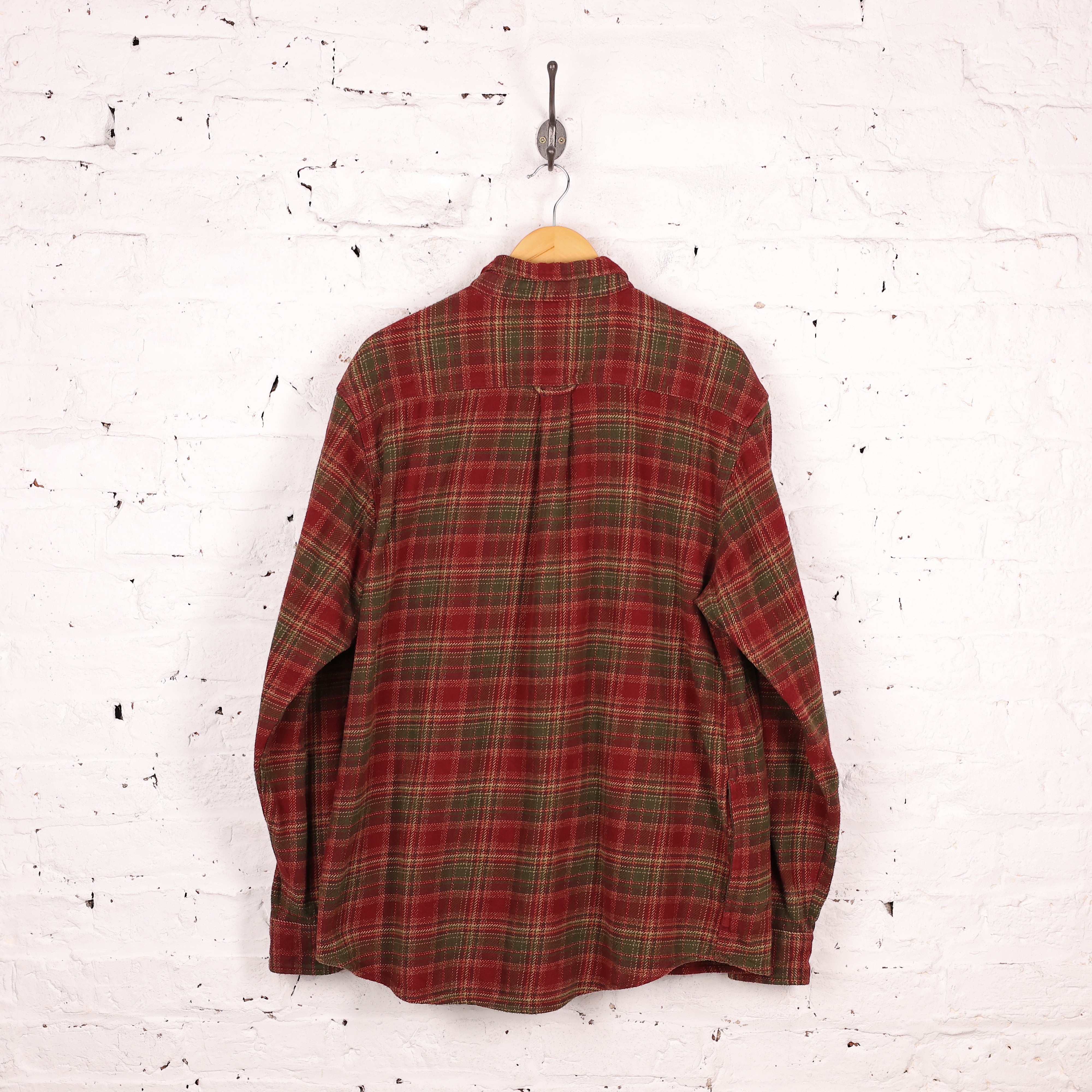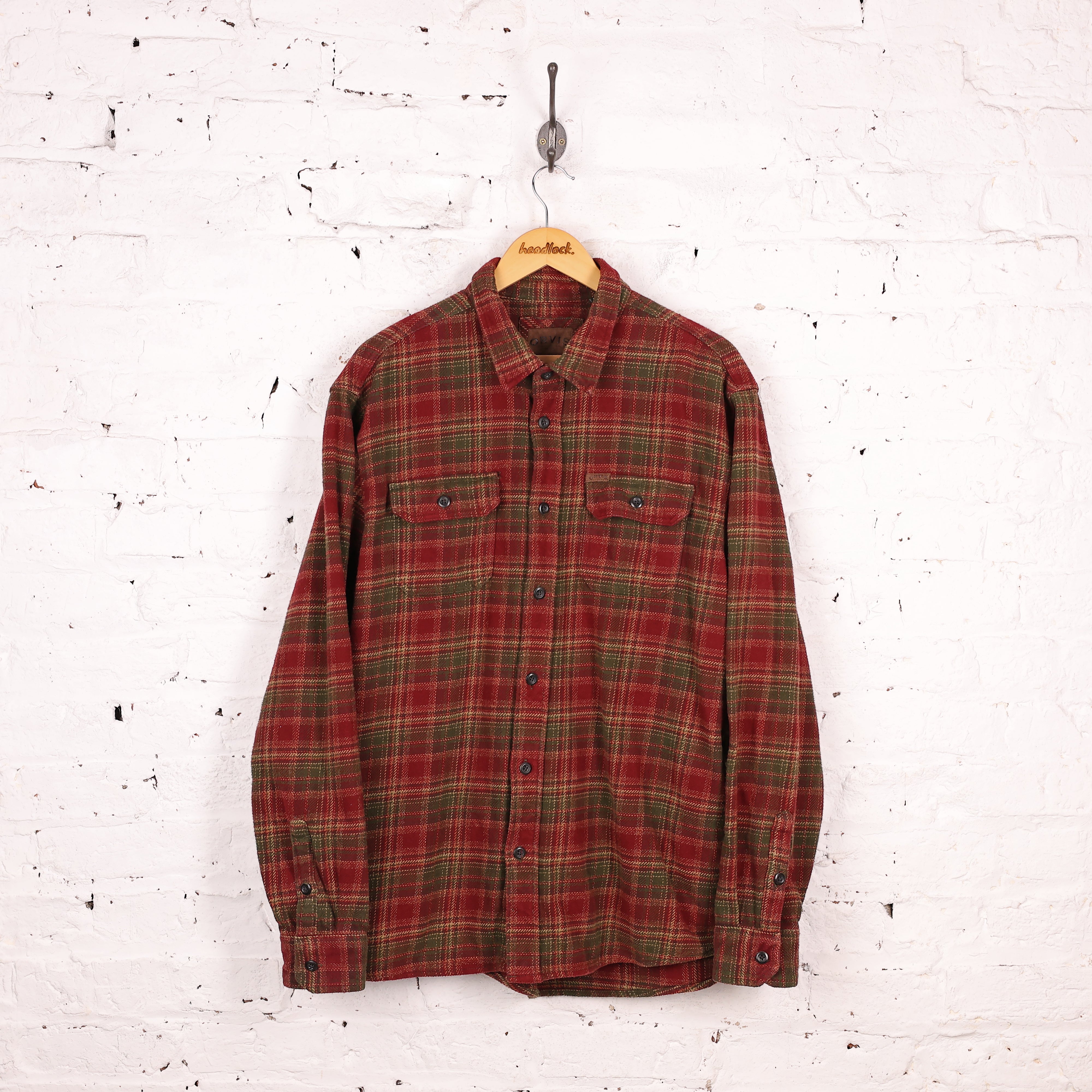 Good condition. Red and green Orvis check shirt with two chest pockets and side pockets.