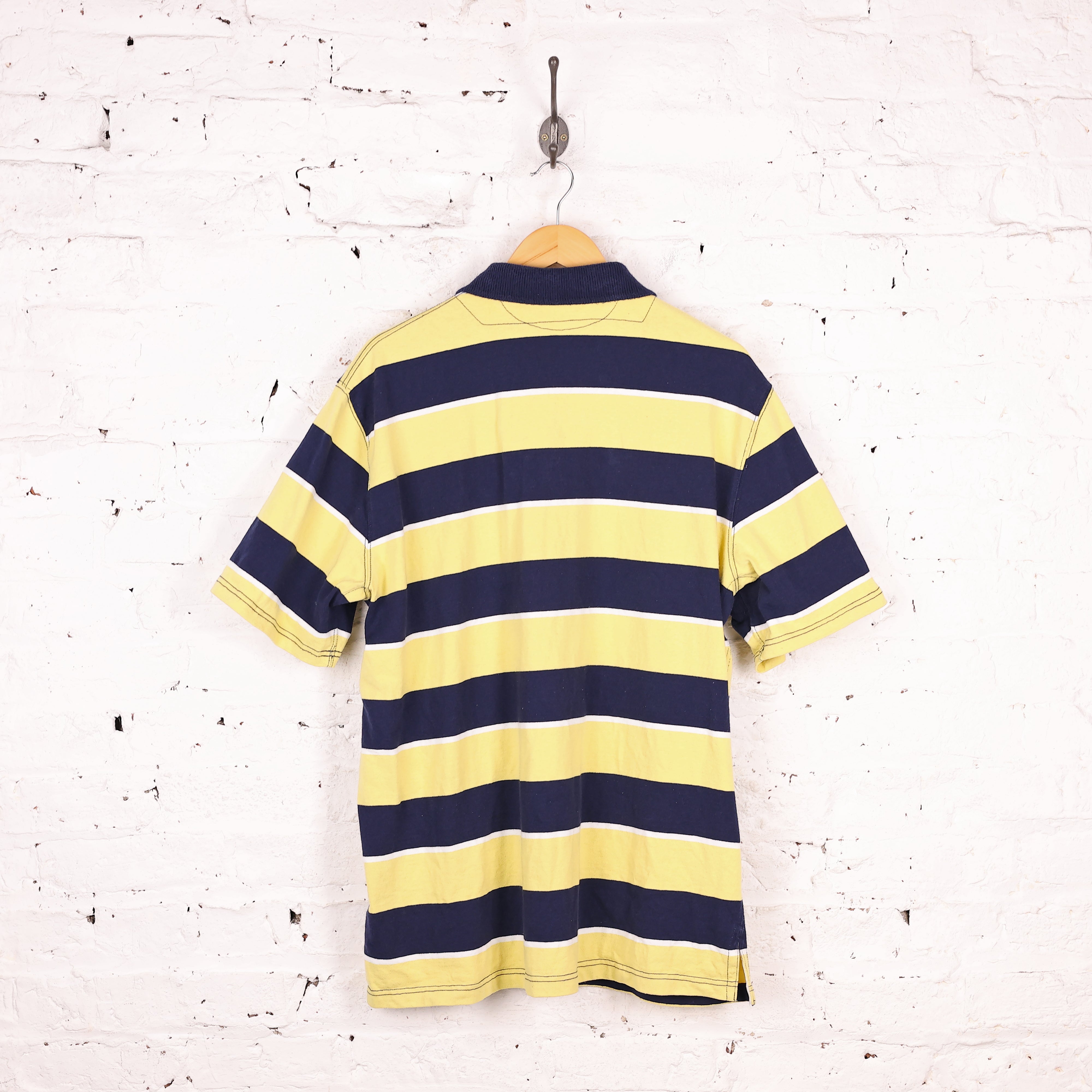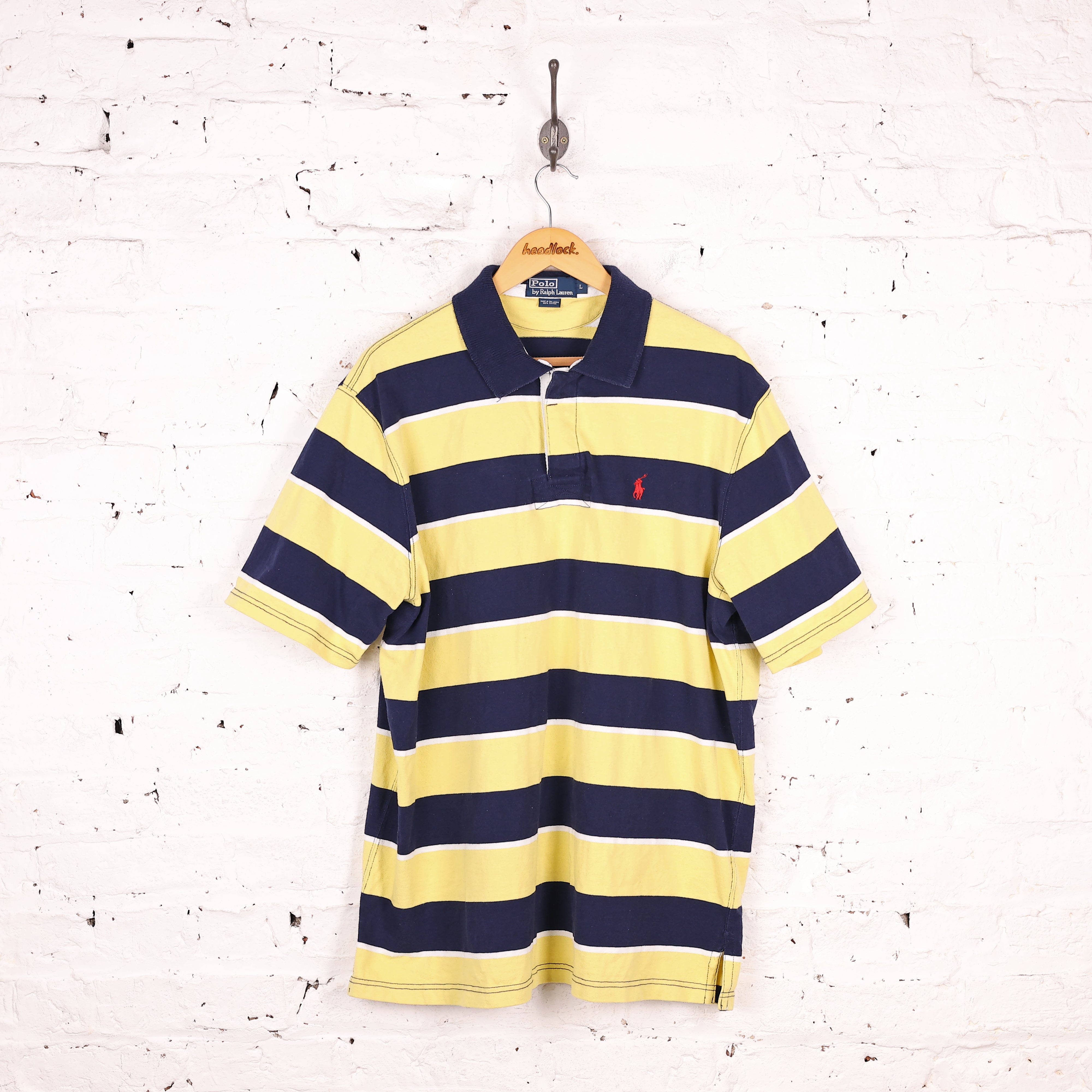 Good condition. Polo Ralph Lauren short sleeve polo in yellow and black with stitched logo on the chest.