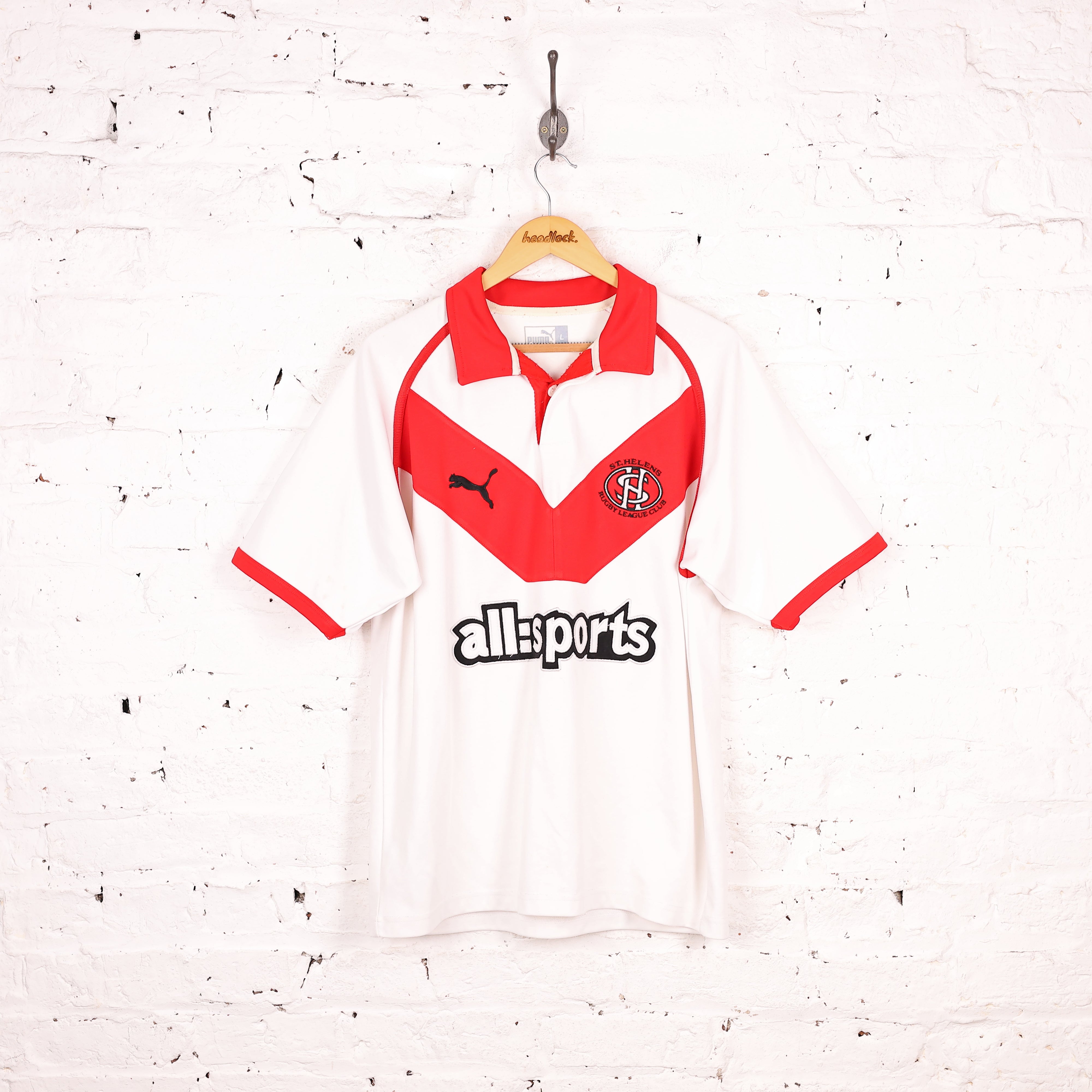 Good condition. St Helens RLC home shirt made by Puma with stitched badge and logo on the chest and 'all:sports' sponsor.