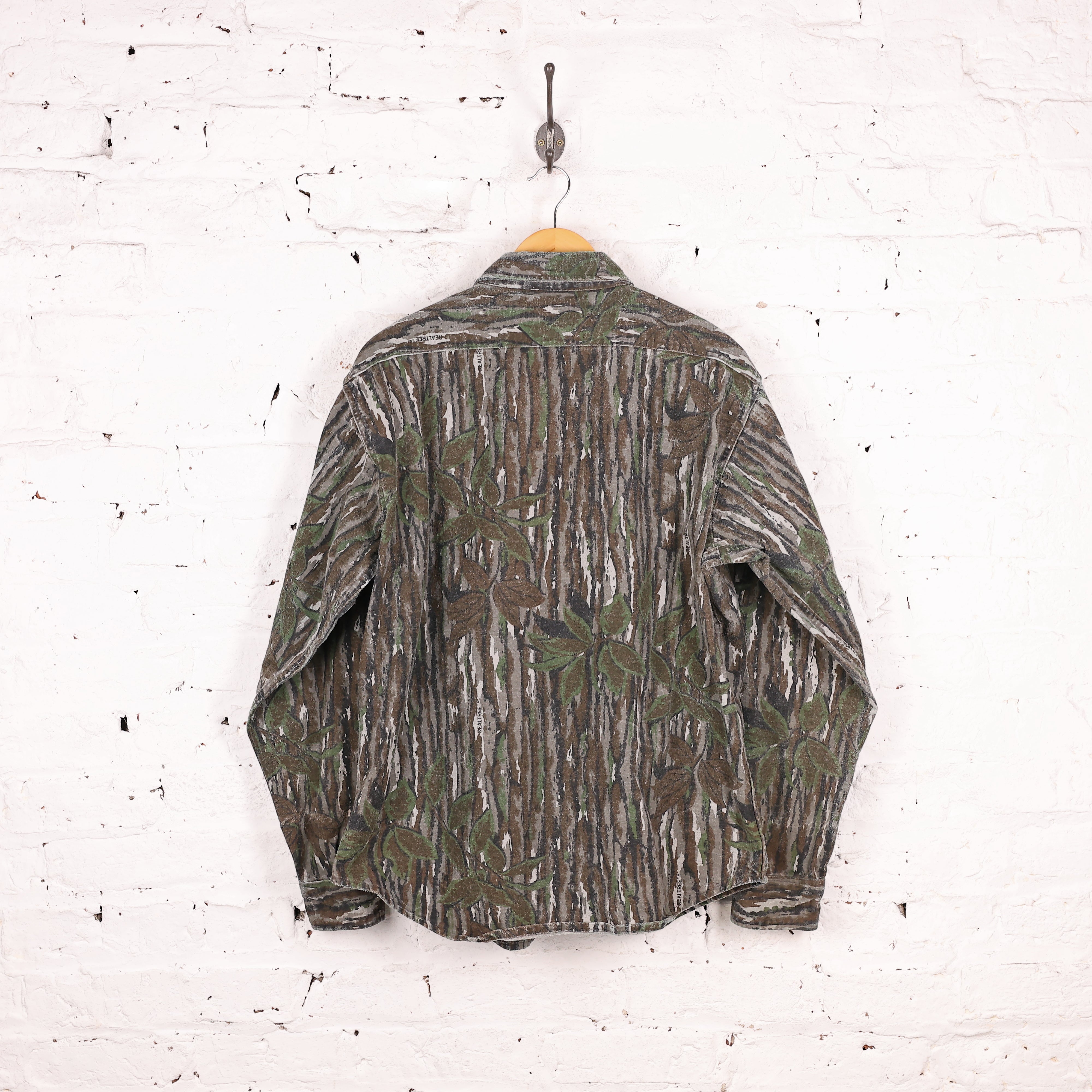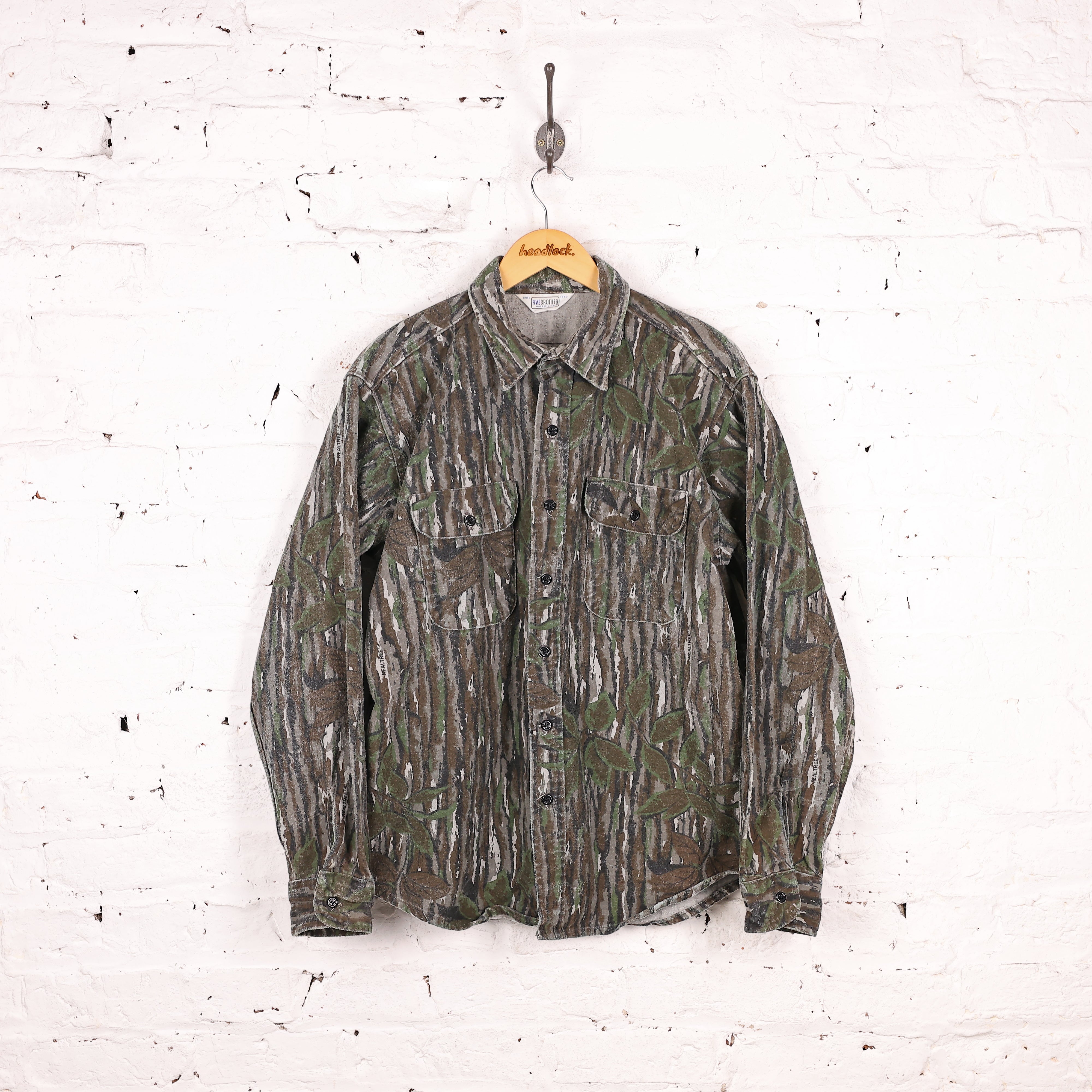 Good condition. Real tree camouflage shirt in green and brown with two chest pockets.