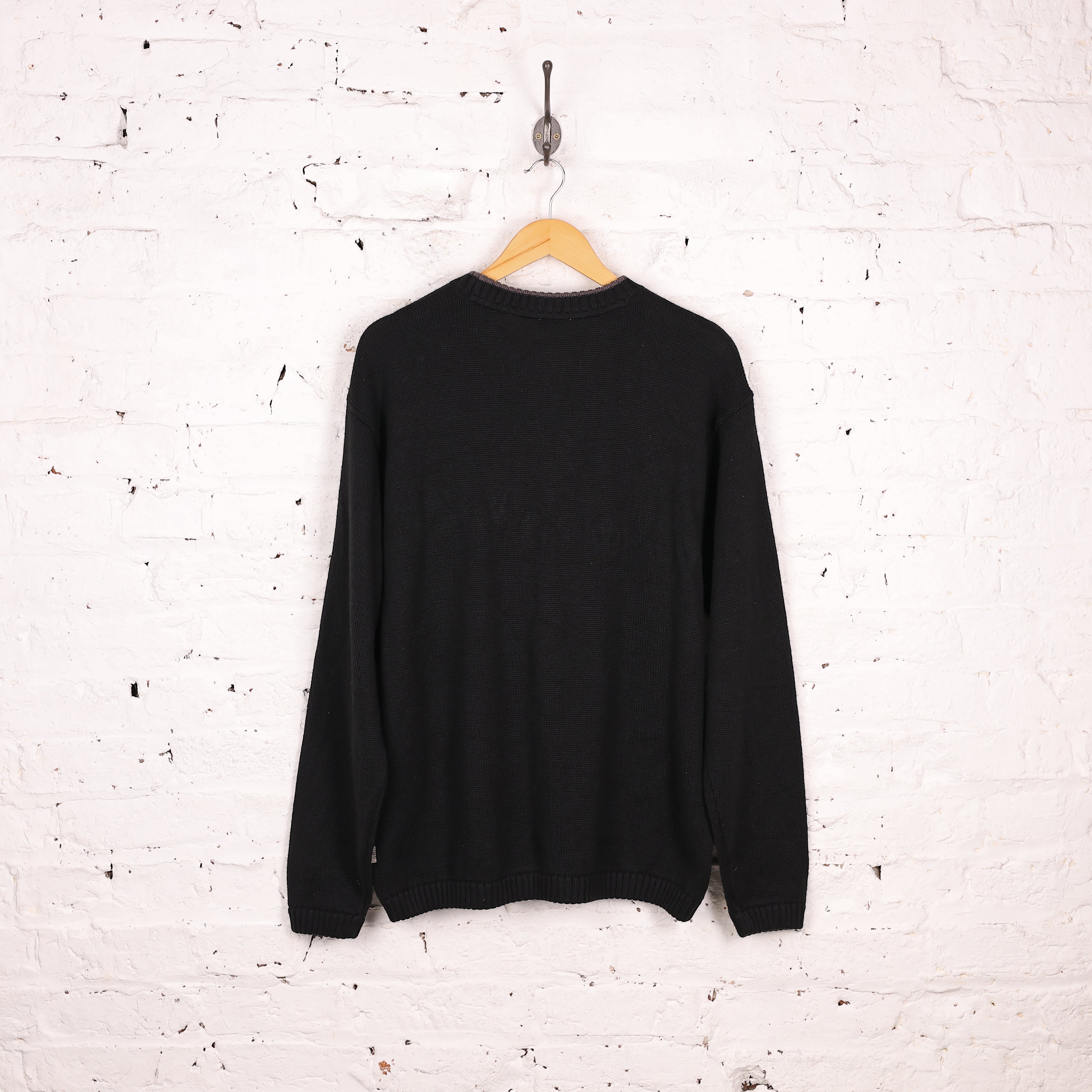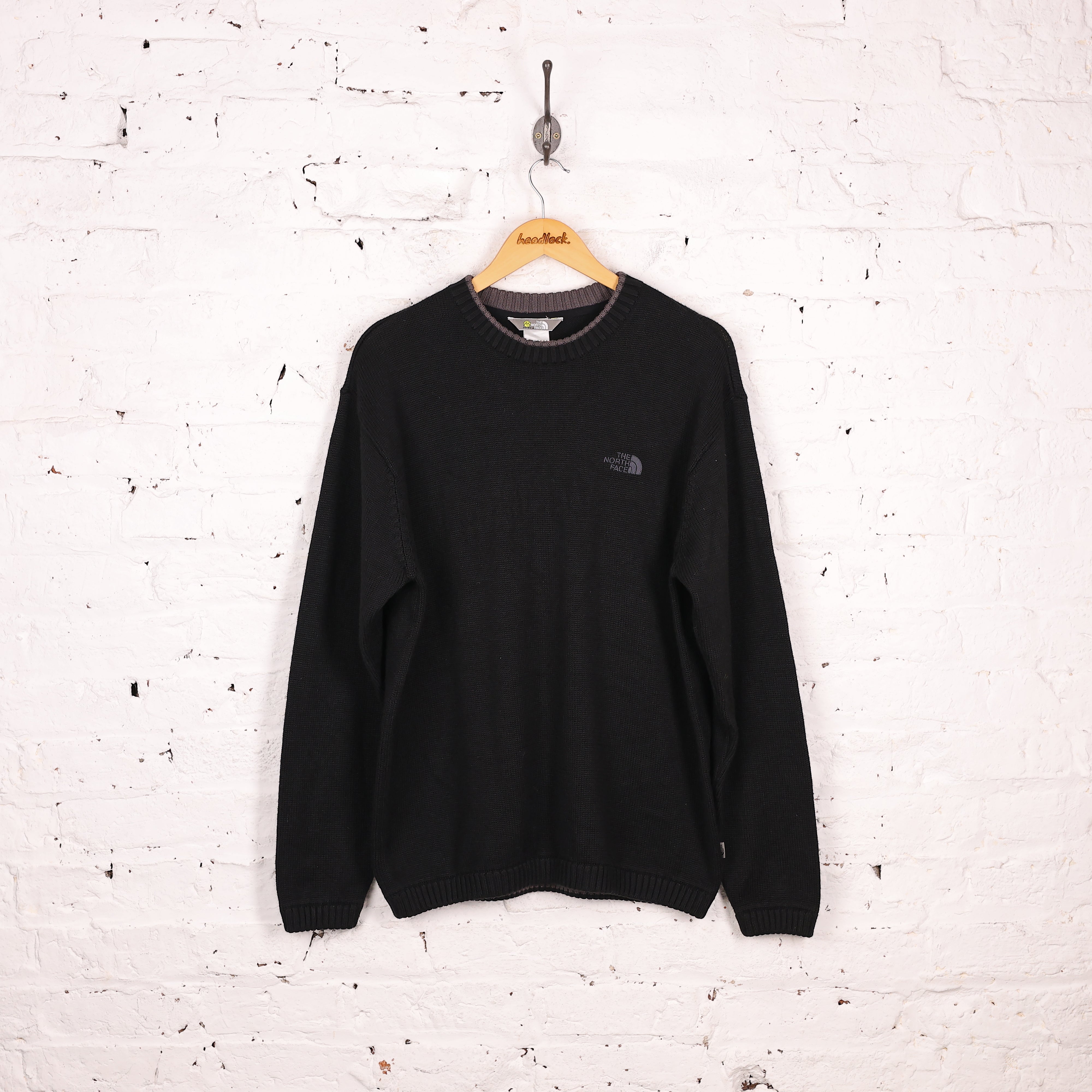Good condition. 50% Wool. The North Face knit jumper in black with stitched logo on the chest and ribbed hem.