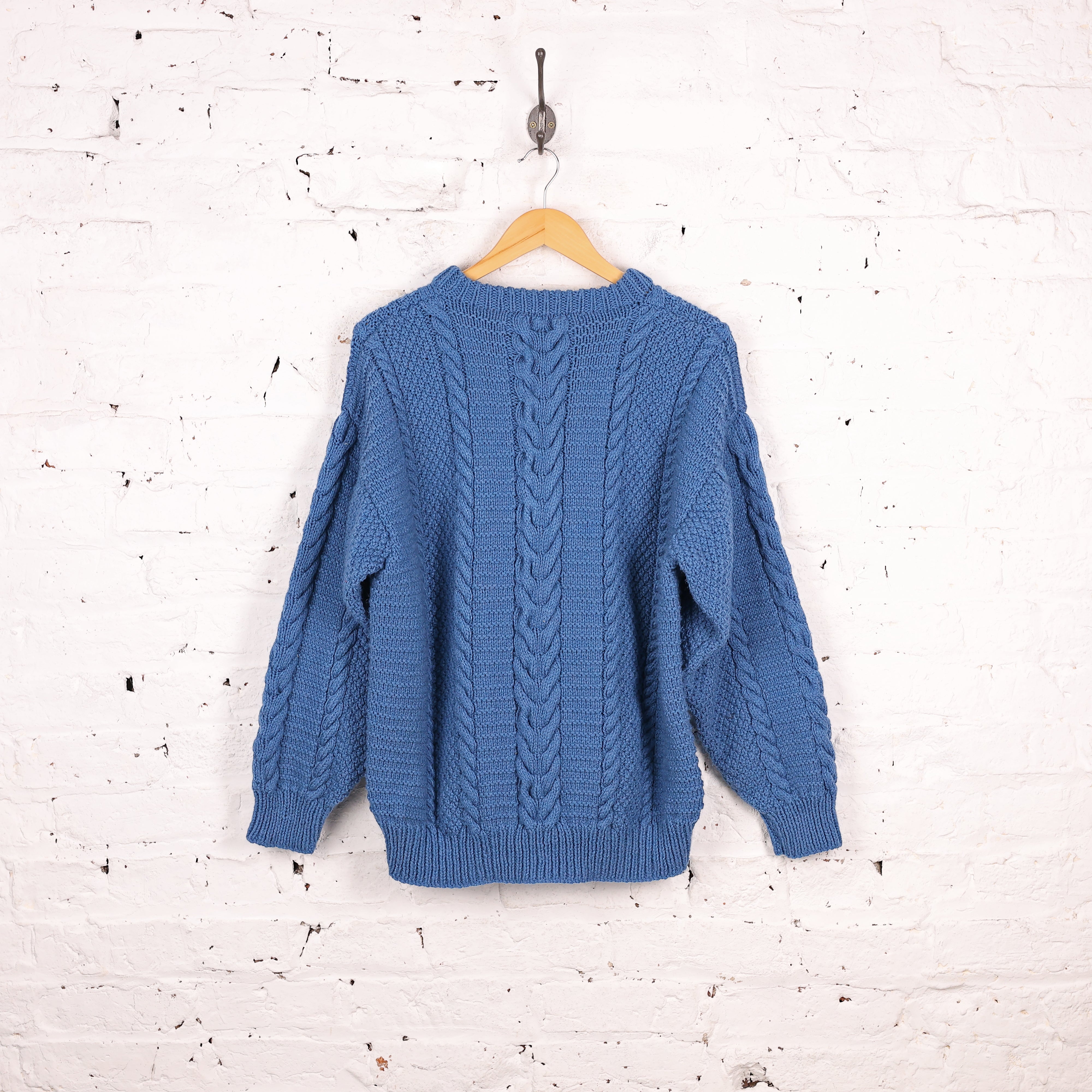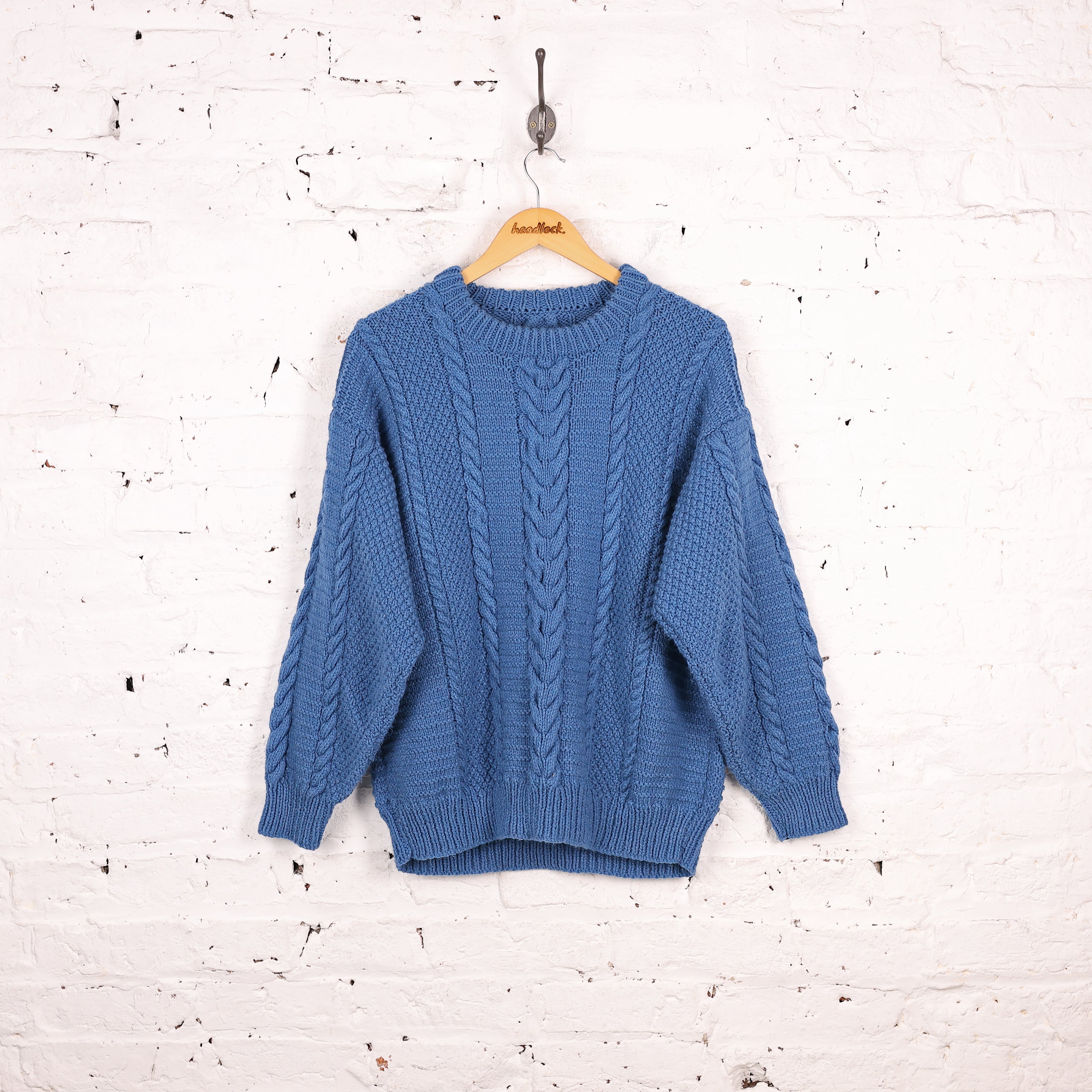 Women's Aran Cable Knit Jumper - Blue - Women's L