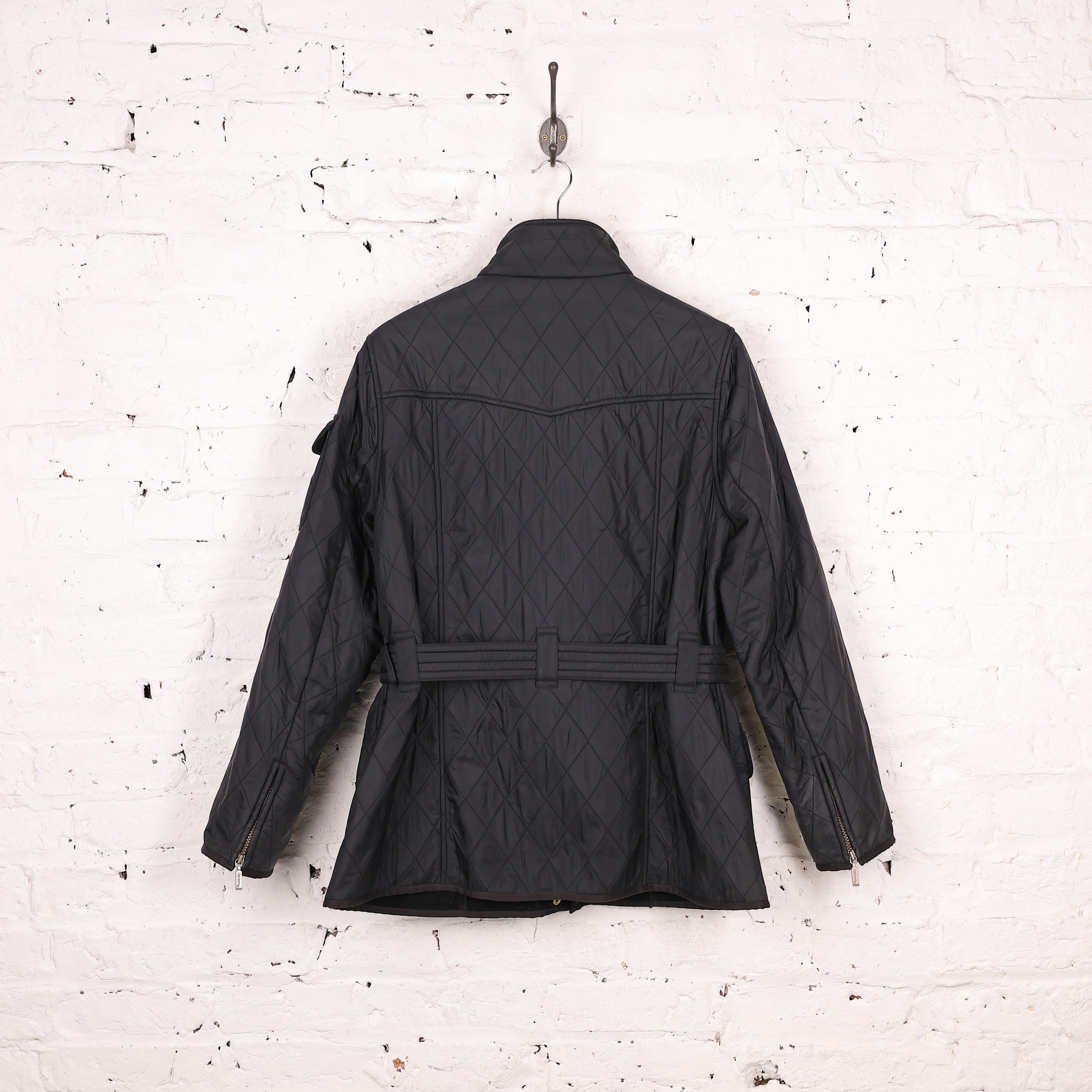 Excellent condition. Black Barbour International Polar Quilt with waist belt, four pockets, Barbour International tab logo on the chest and fleece inner lining. UK Size 12