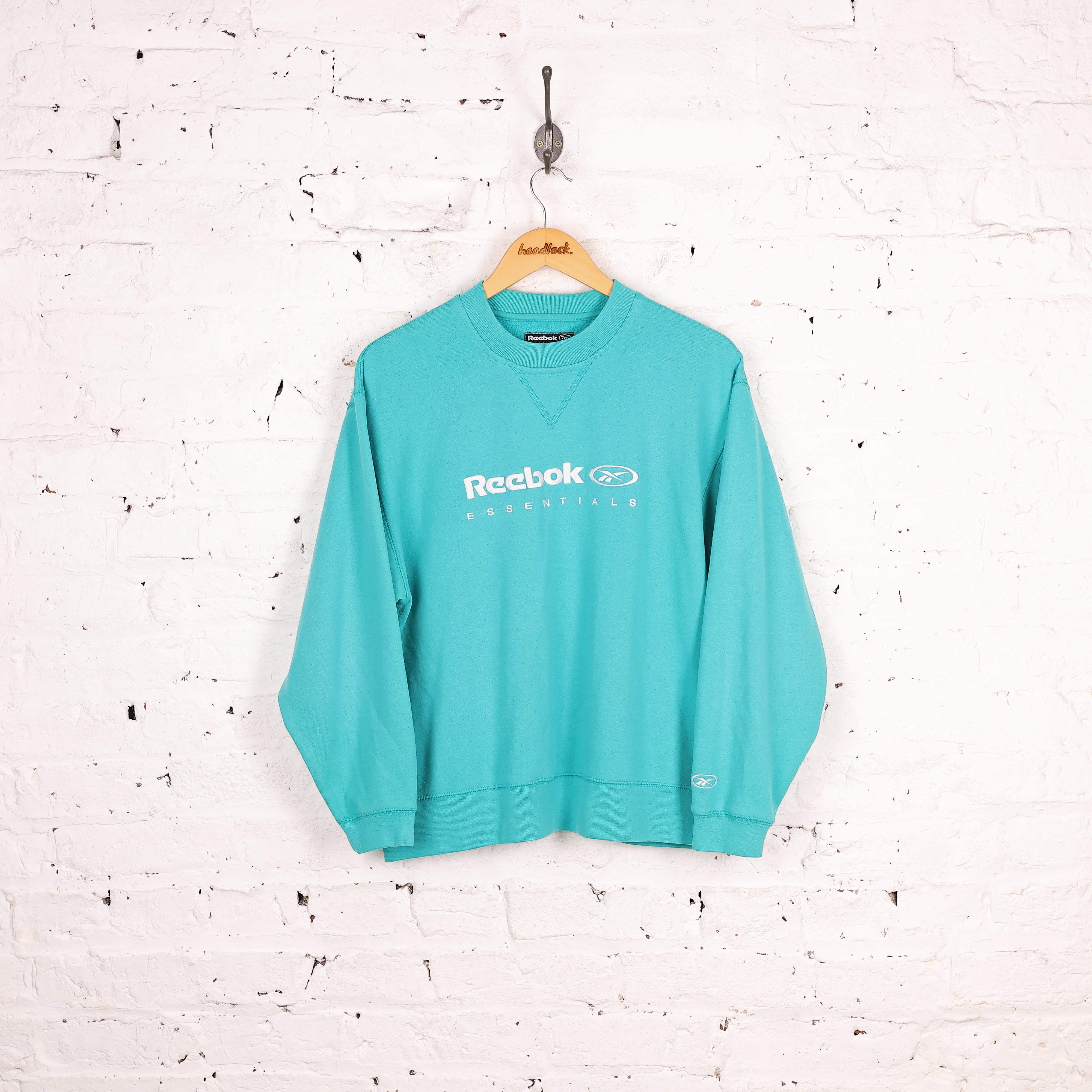 Good condition, slightly bobbled fabric. Reebok Essentials sweatshirt in green with stitched white lettering.