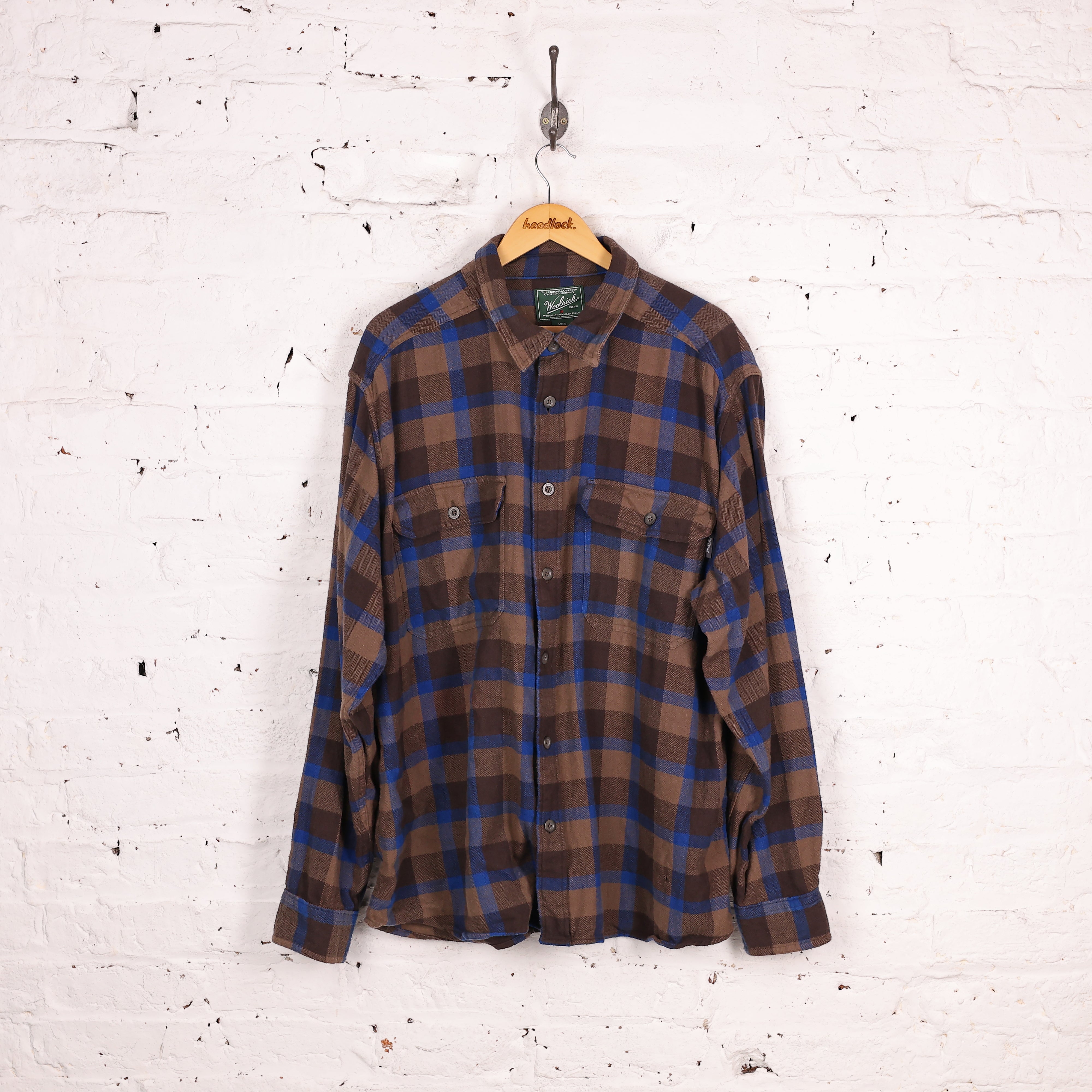 Good condition, very small hole to the front (bottom left) Woolrich check shirt in brown and blue check with two chest pockets.